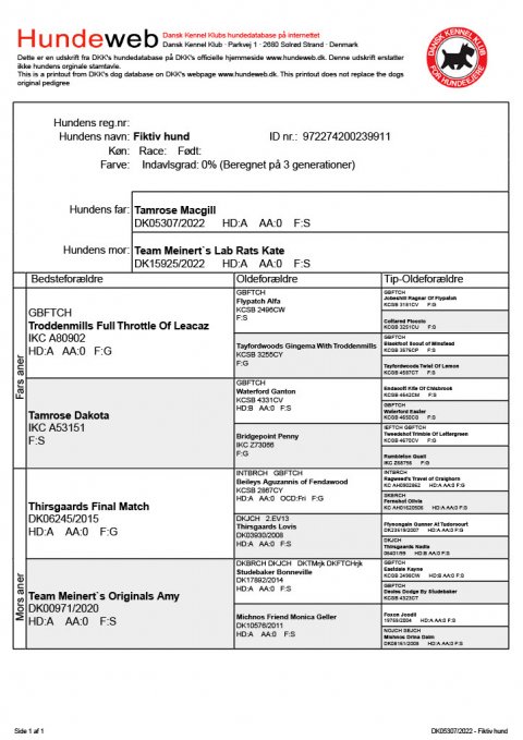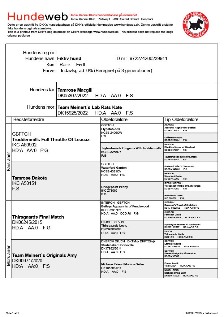Stamtavle for hvalpe efter Team Meinert`s Lab Rat Kate og Tamrose Macgill