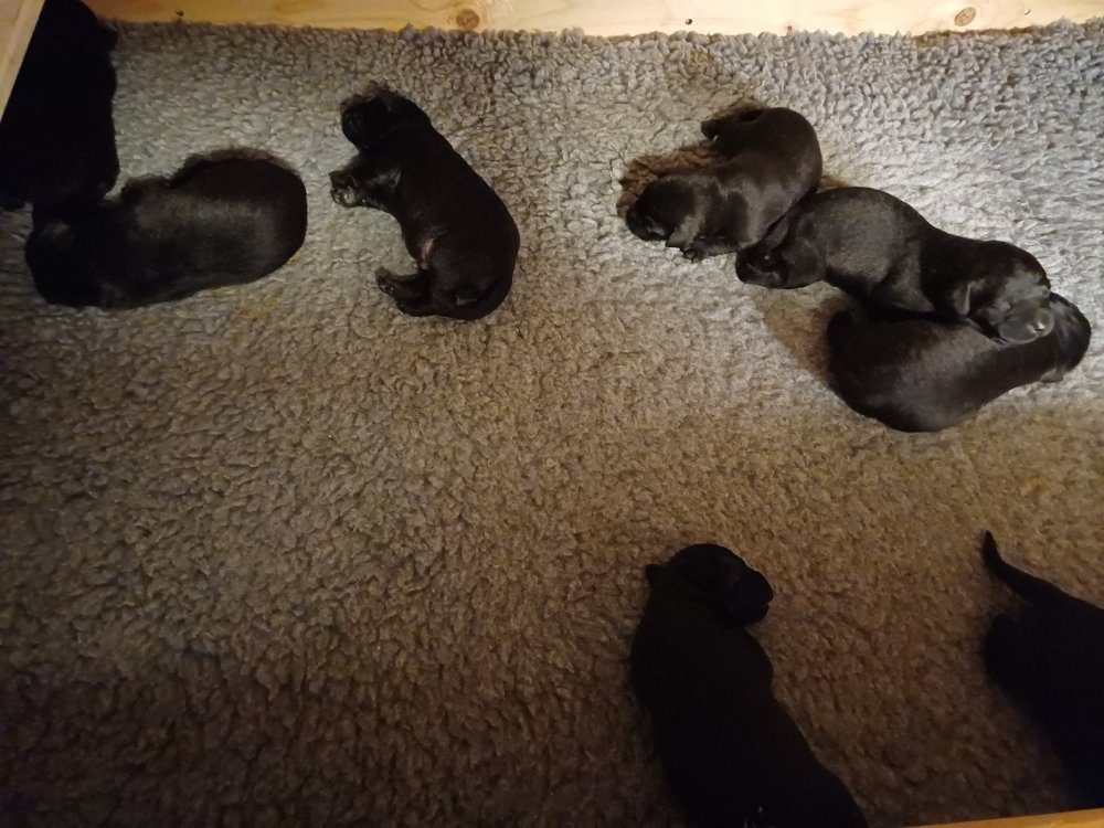 Lidt billeder fra den første uge i hvalpekassen. Hvalpene kommer med en hel masse knirkelyde og bruger tiden på at spise, sove, spise, sove osv.