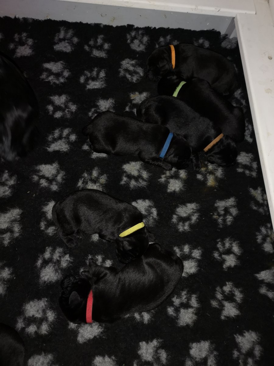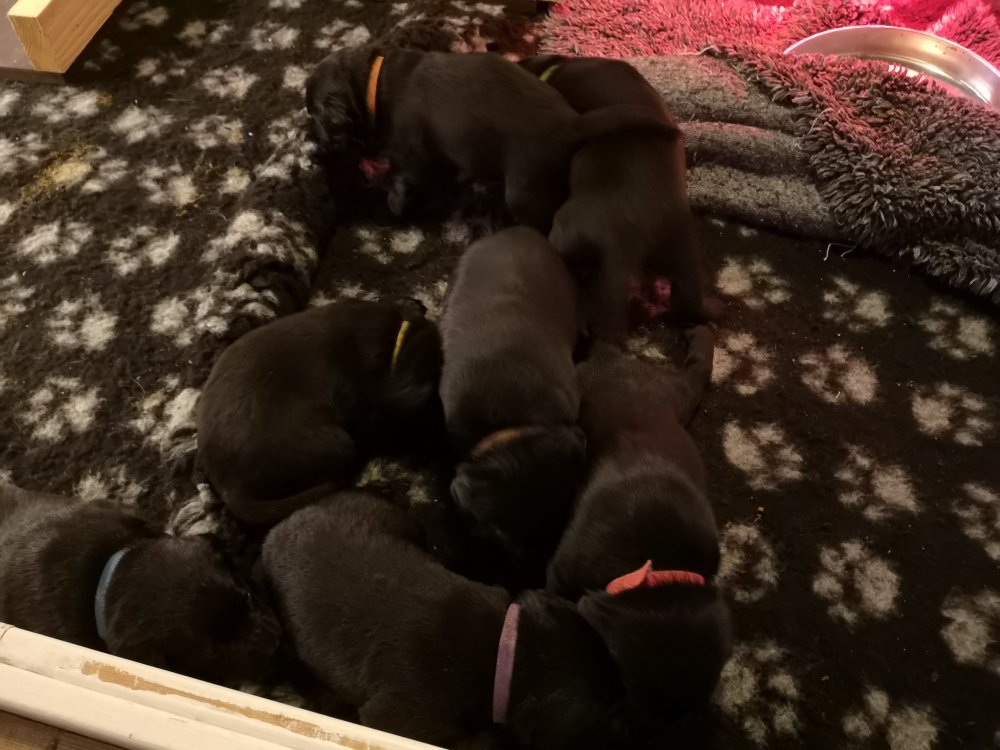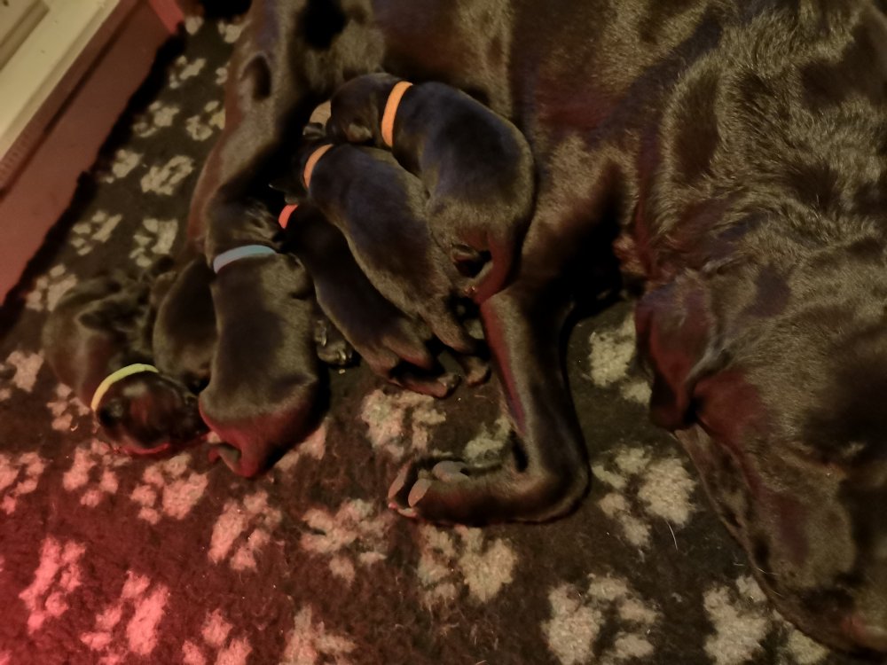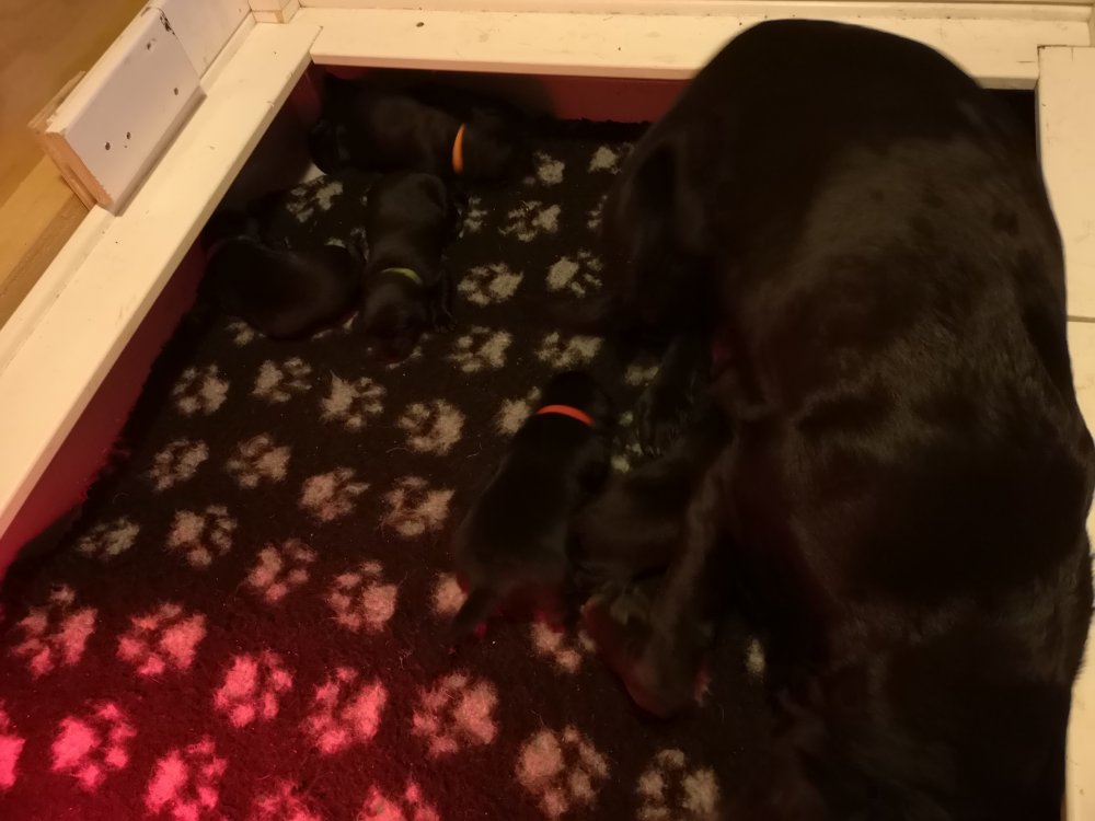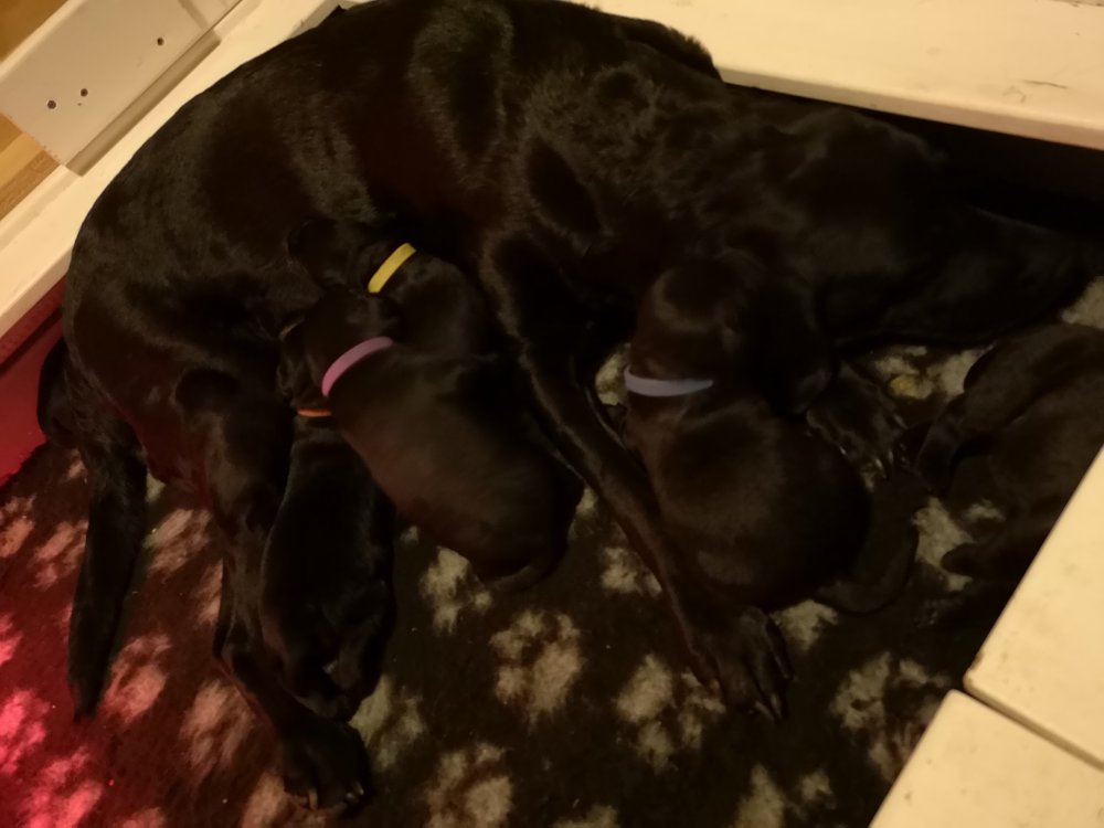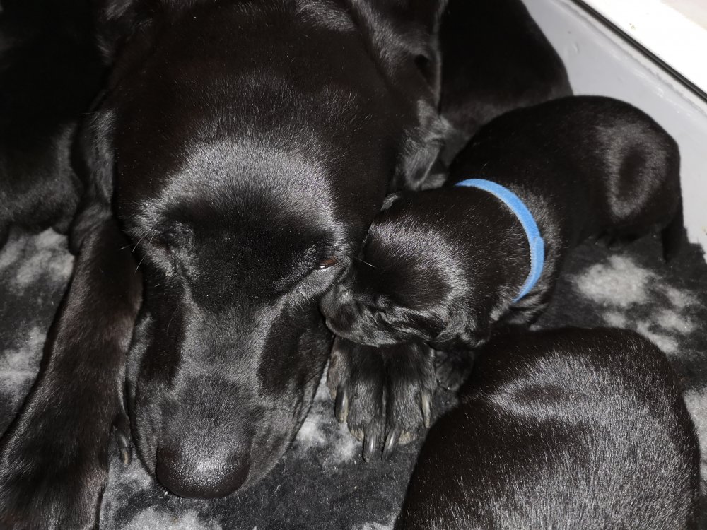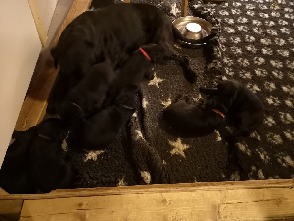 Team Meinert`s Violetta Francesca og Studebaker Bonneville har fået 7 store sorte hvalpe, 5 tæver og 2 hanner.