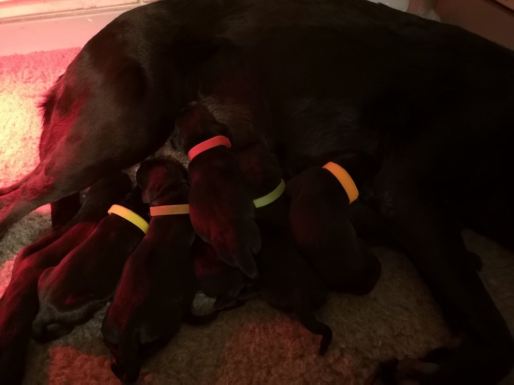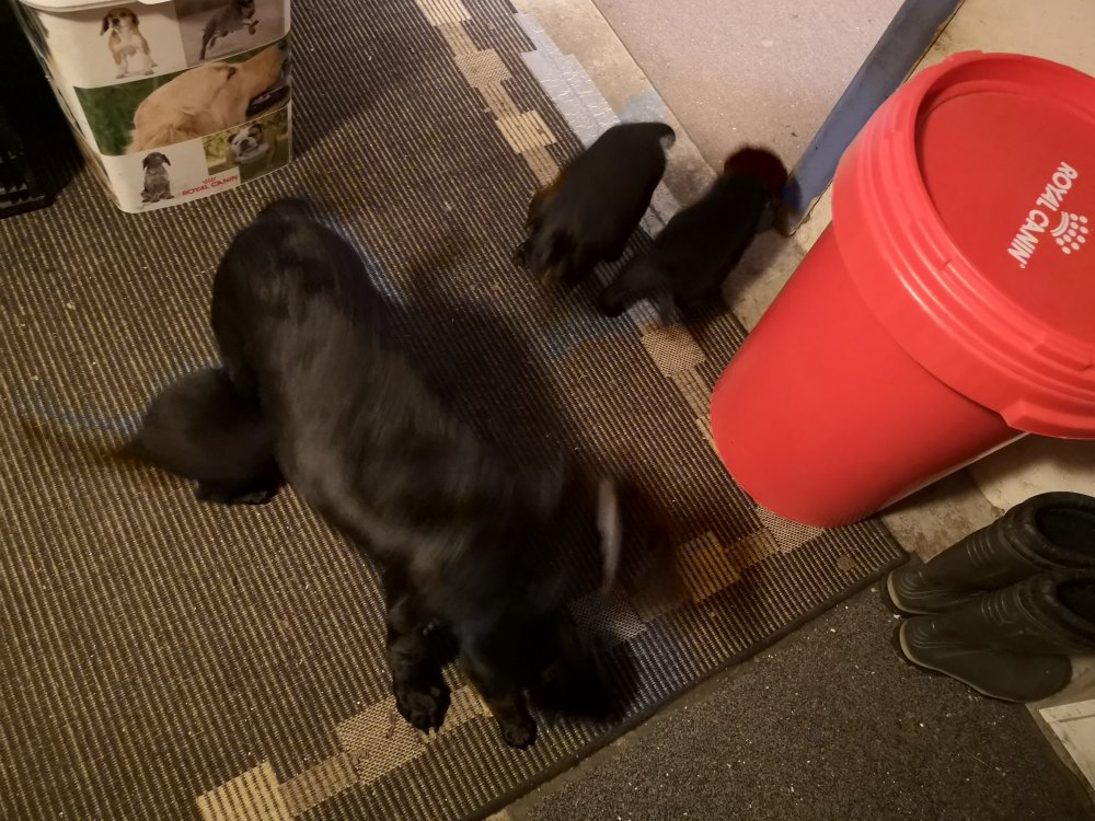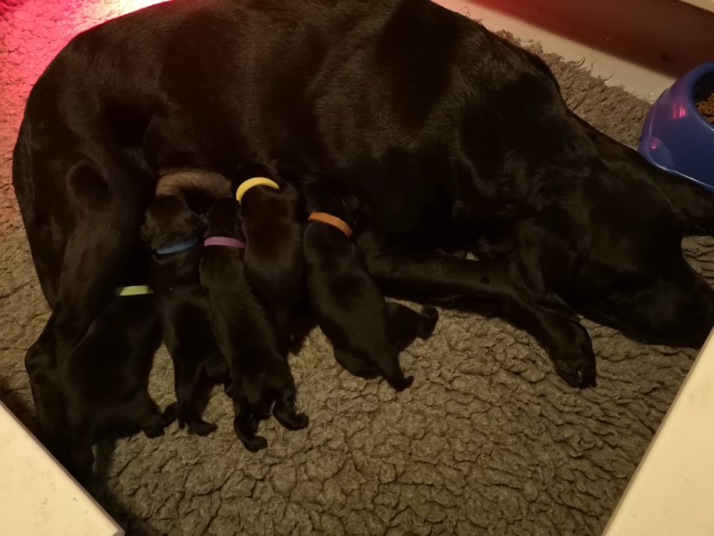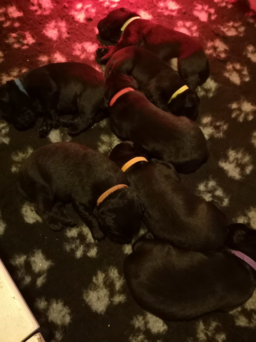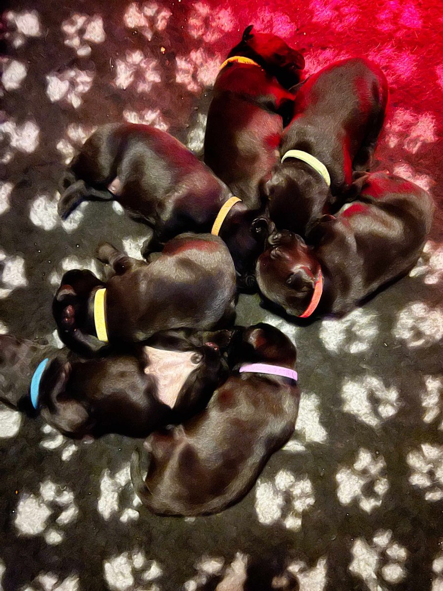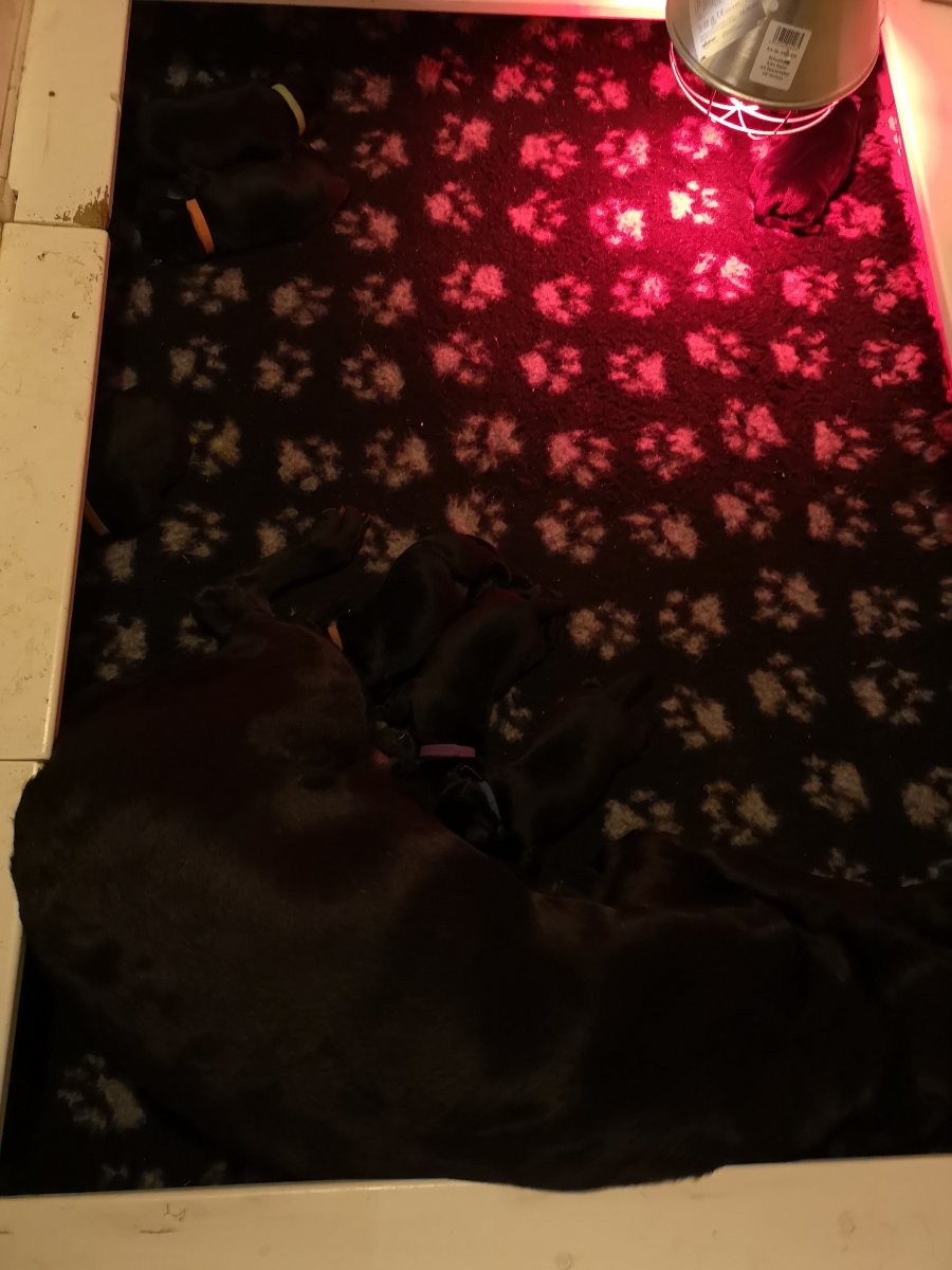 Team Meinert`s Violetta Francesca og Studebaker Bonneville har fået 7 store sorte hvalpe, 5 tæver og 2 hanner.