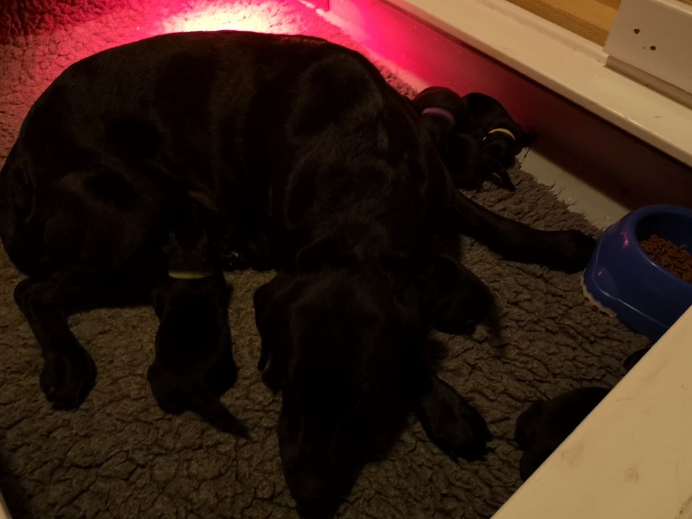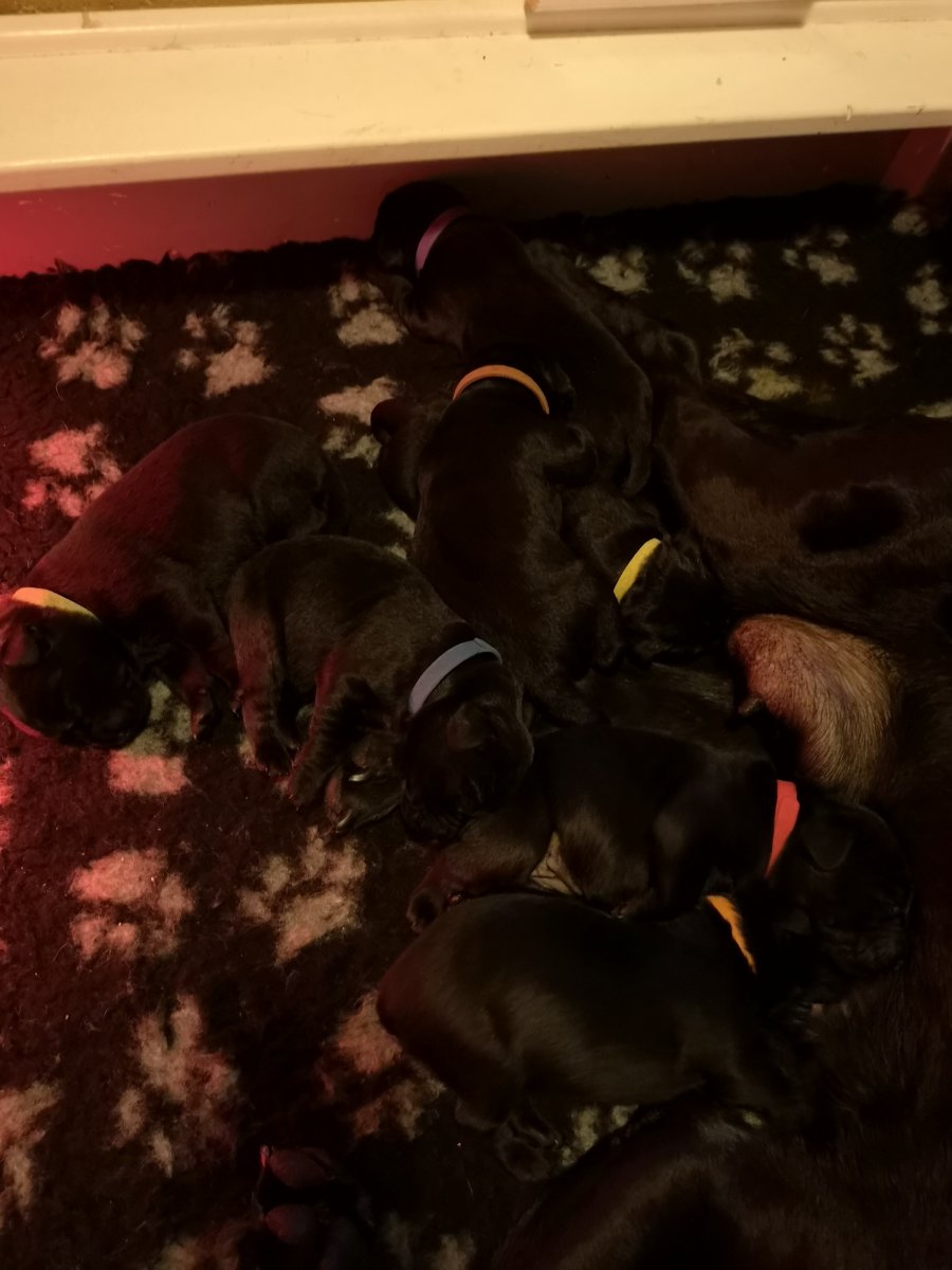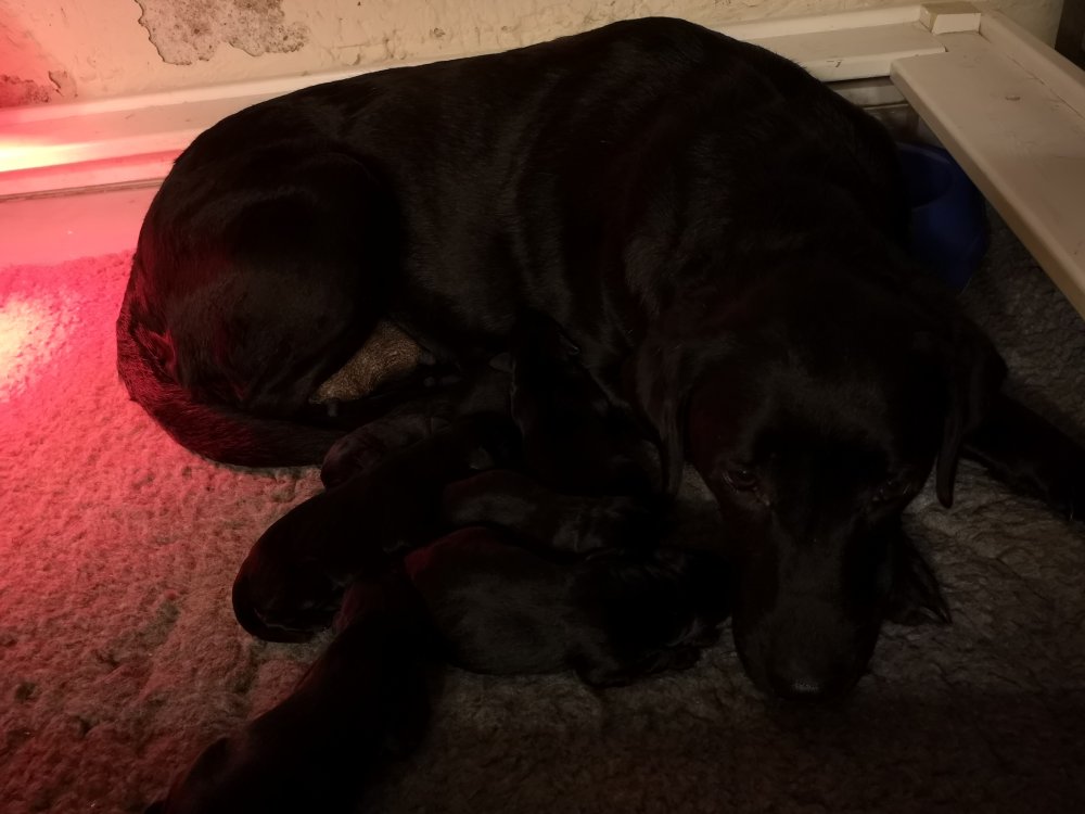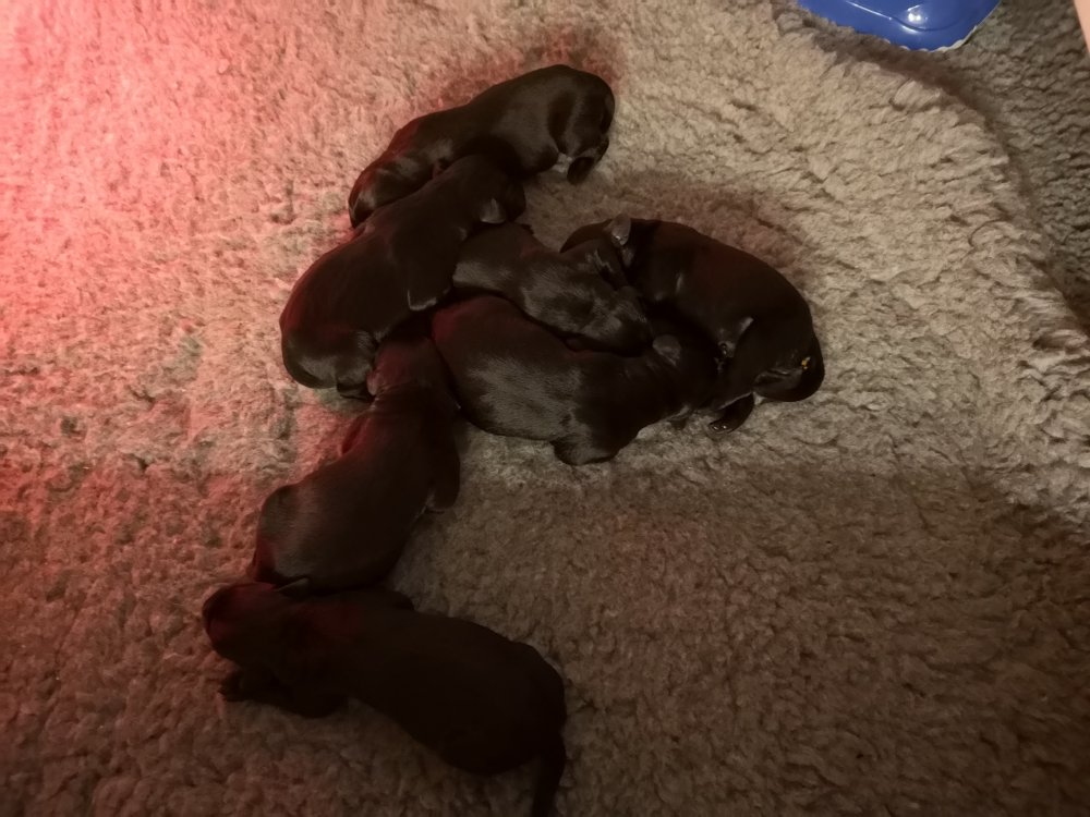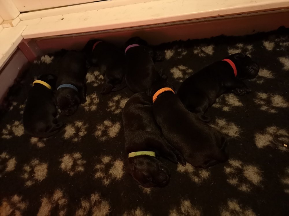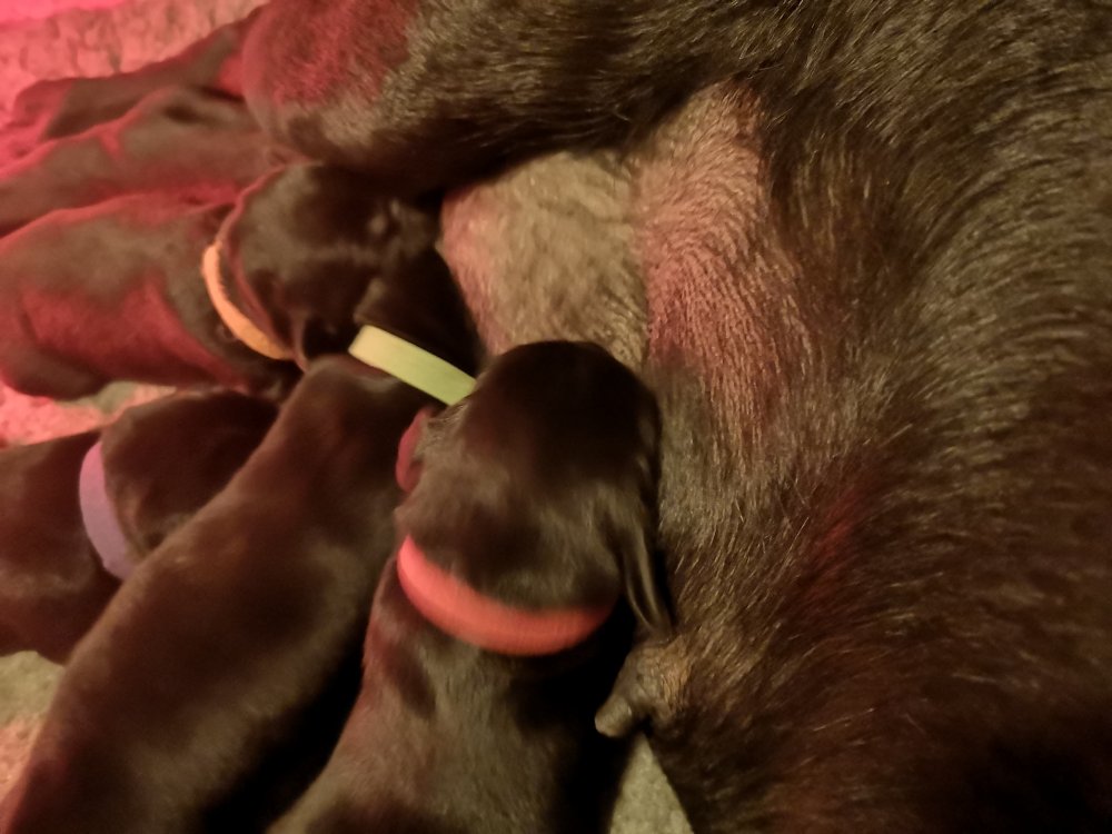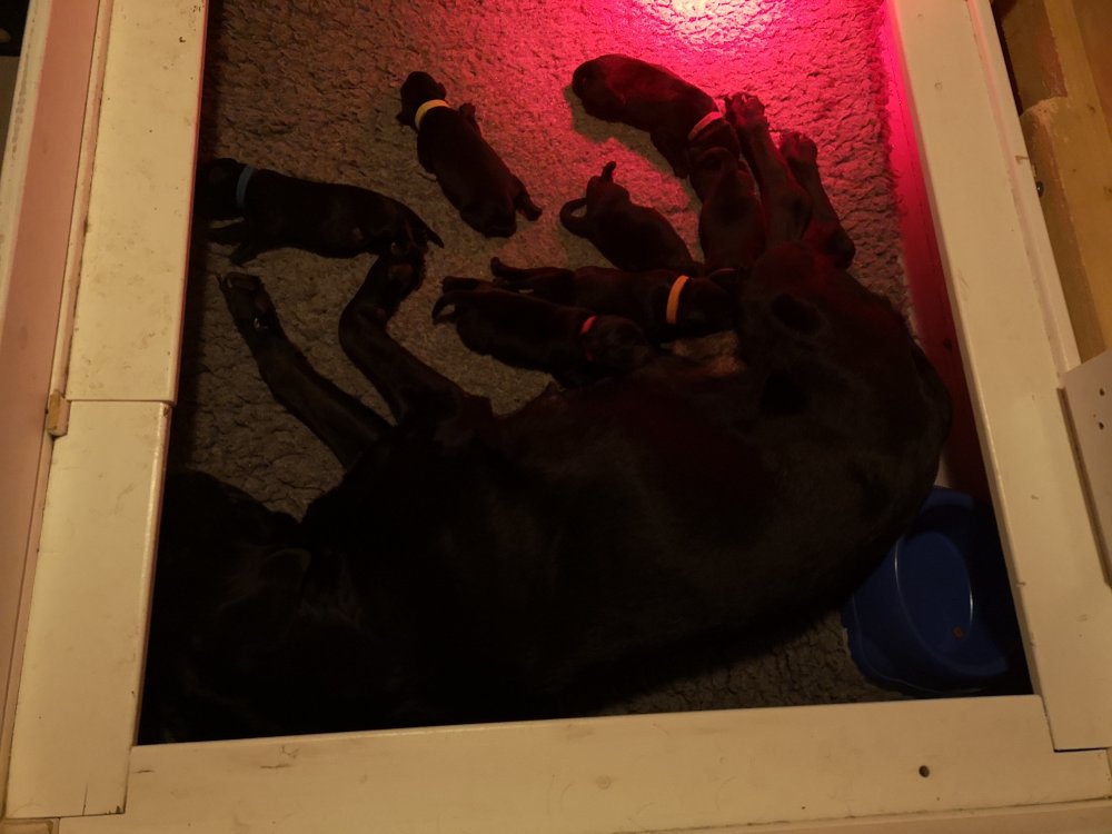 Team Meinert`s Violetta Francesca og Studebaker Bonneville har fået 7 store sorte hvalpe, 5 tæver og 2 hanner.