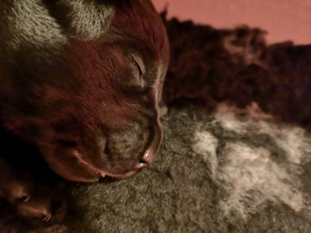 Stadig væk går tiden med at spise og sove Nata kommer også op i stuen for at være sammen med os andre, når hvalpene sover. Vi er begyndt at kunne ane små sprækker ved øjnene, så det bliver så spændende at se de små øjne når de kommer frem.