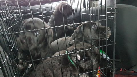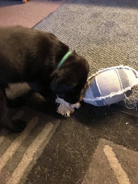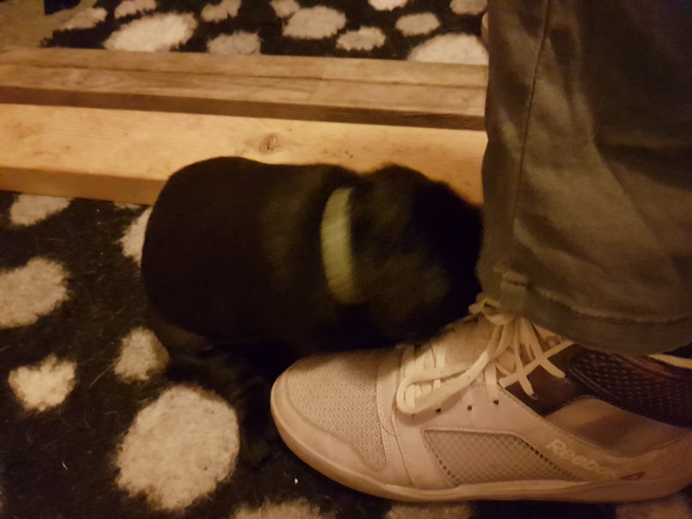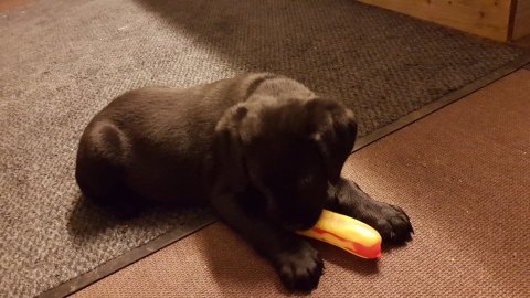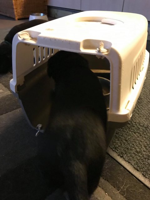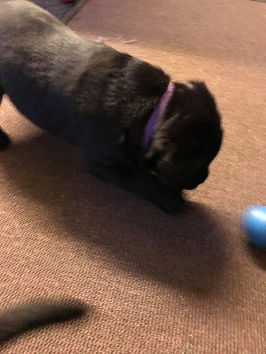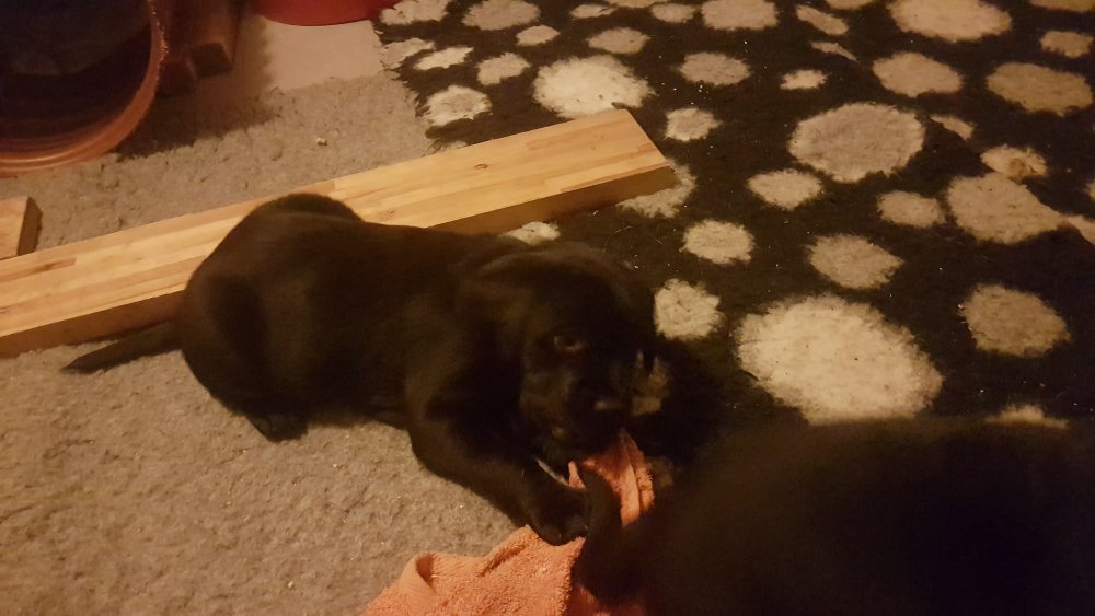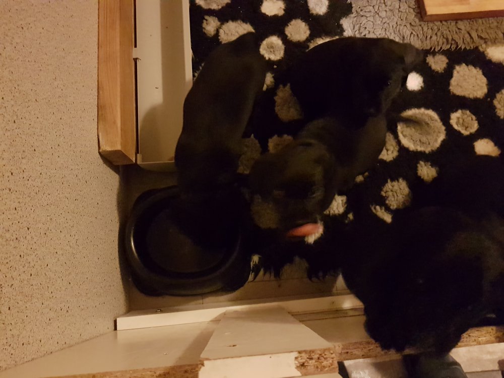 Når vi kommer ned til rummet begynder de at komme på deres små ben når vi snakker til dem. Når de andre hunde står uden for rummet komme de til lågen og sidder og kigger på dem. De er også begyndt at bruge "hunde WCét" mere