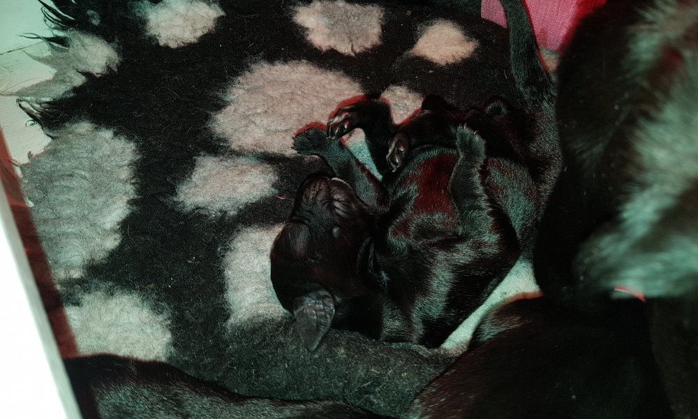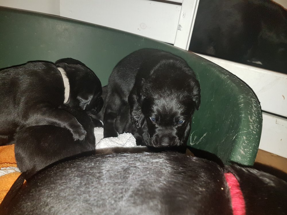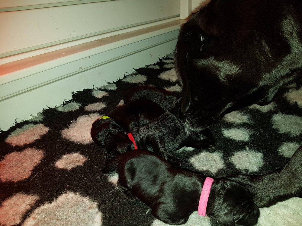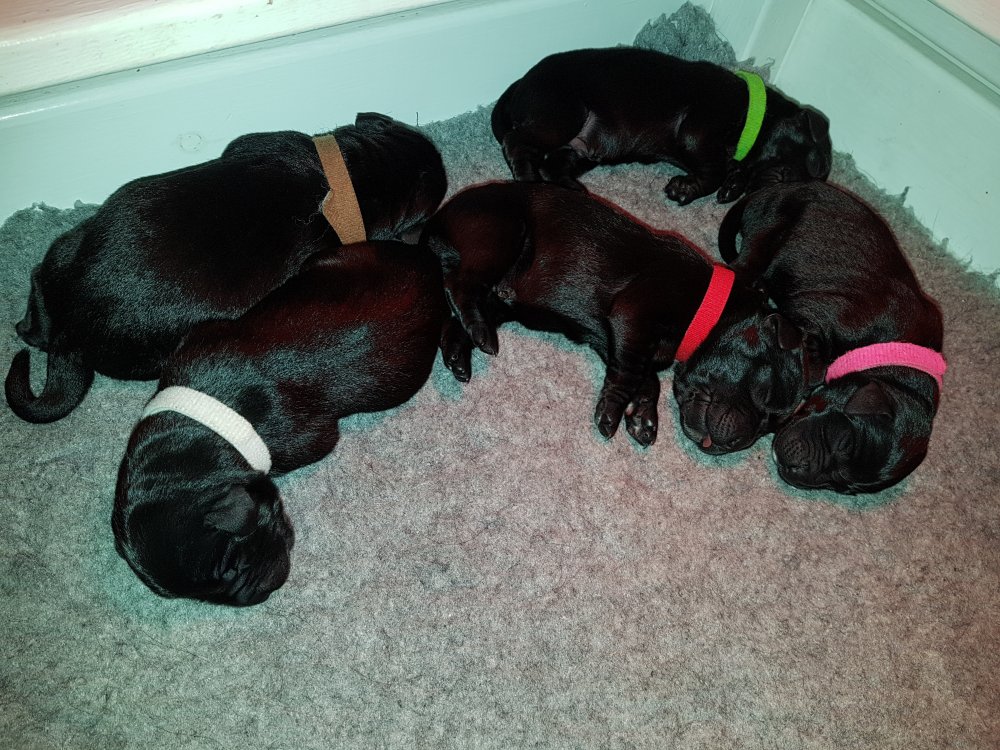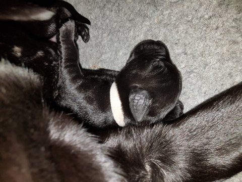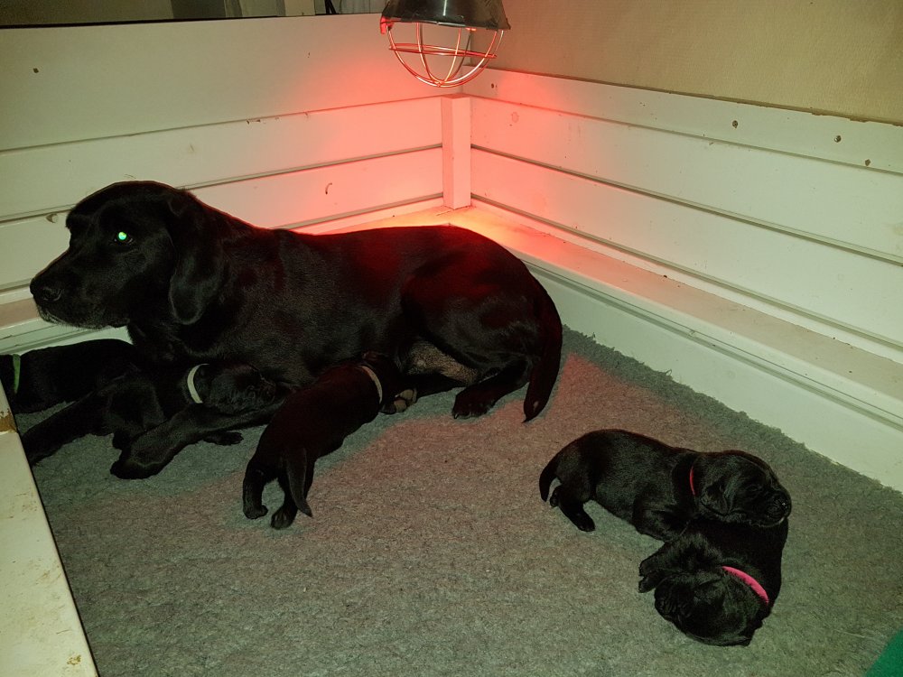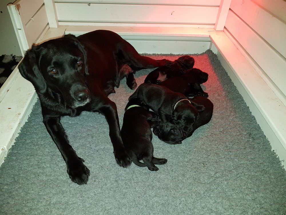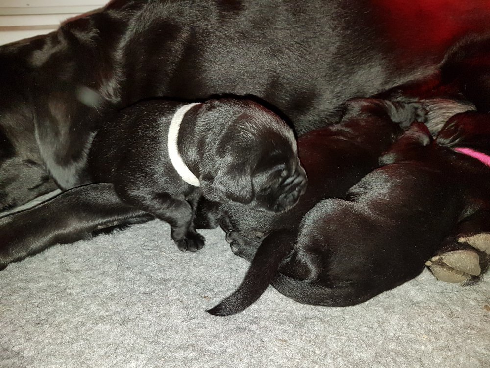 Her i torsdags kunne vi så småt begynde at se små sprækker ved øjnene på et par af hvalpene, så det bliver så spændende at se de små øjne når de kommer frem.