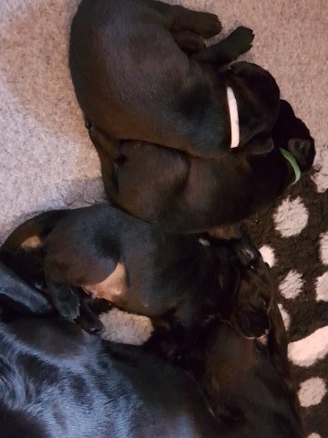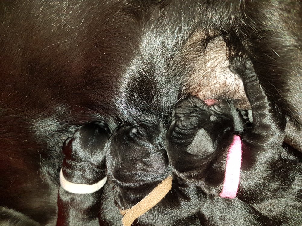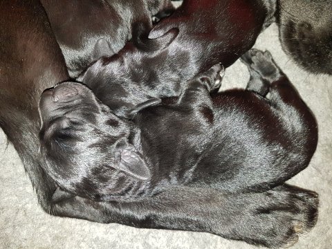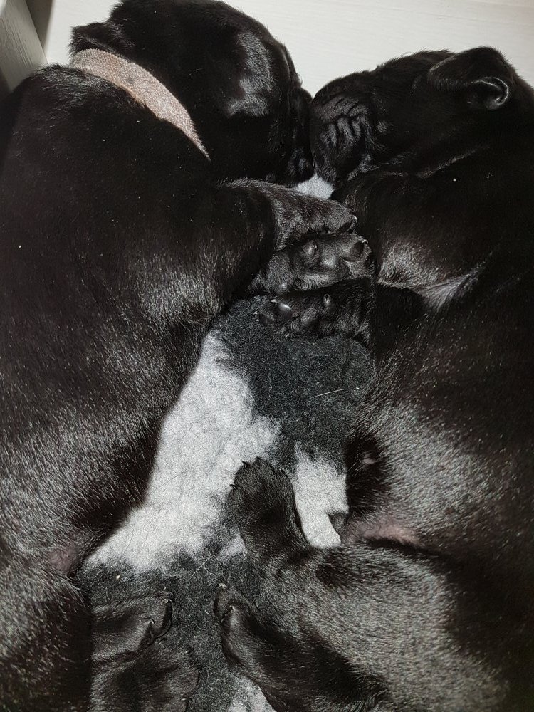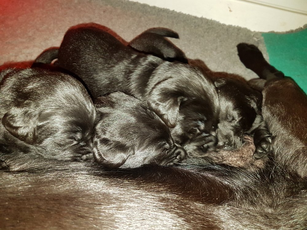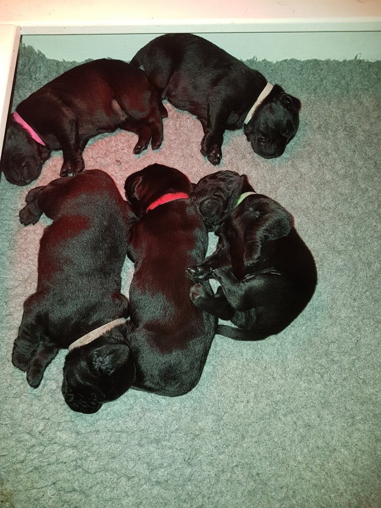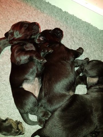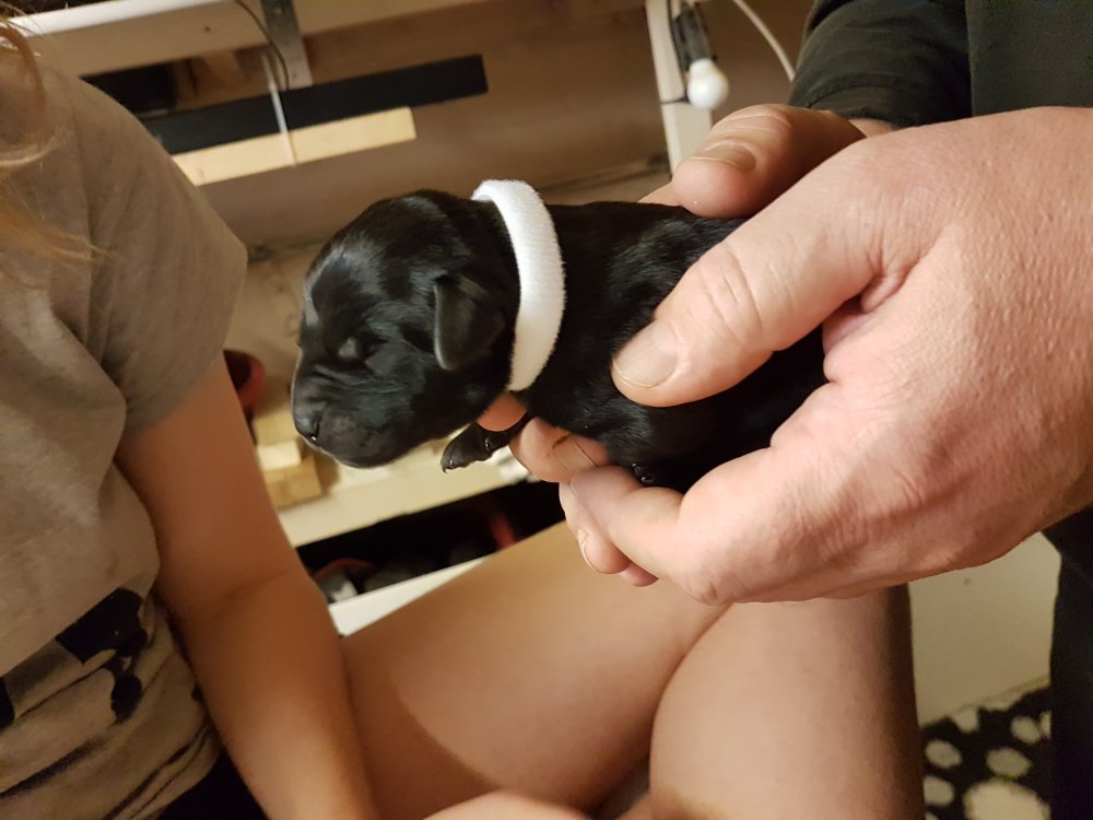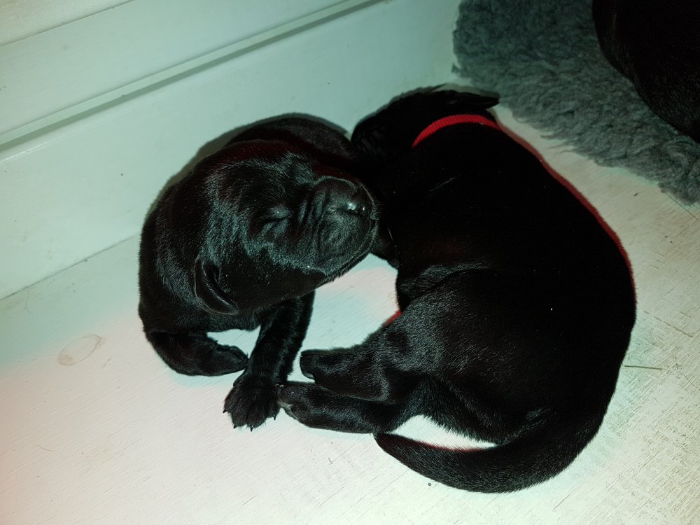 Her i torsdags kunne vi så småt begynde at se små sprækker ved øjnene på et par af hvalpene, så det bliver så spændende at se de små øjne når de kommer frem.