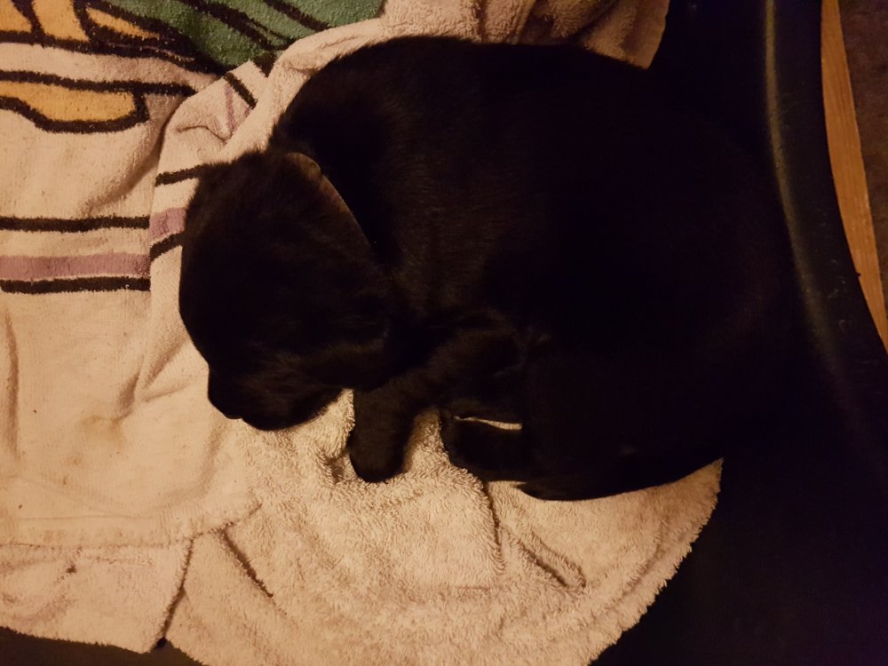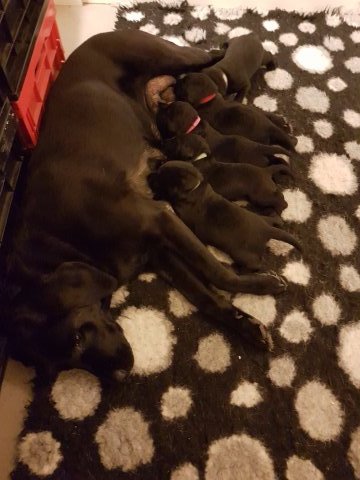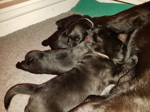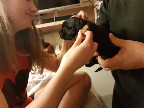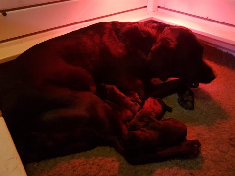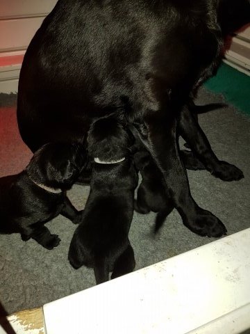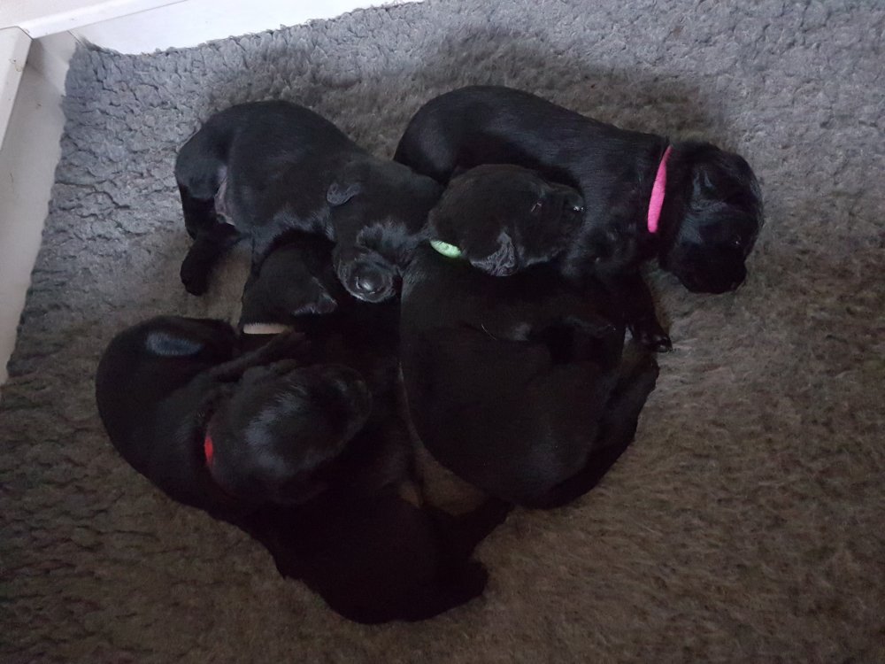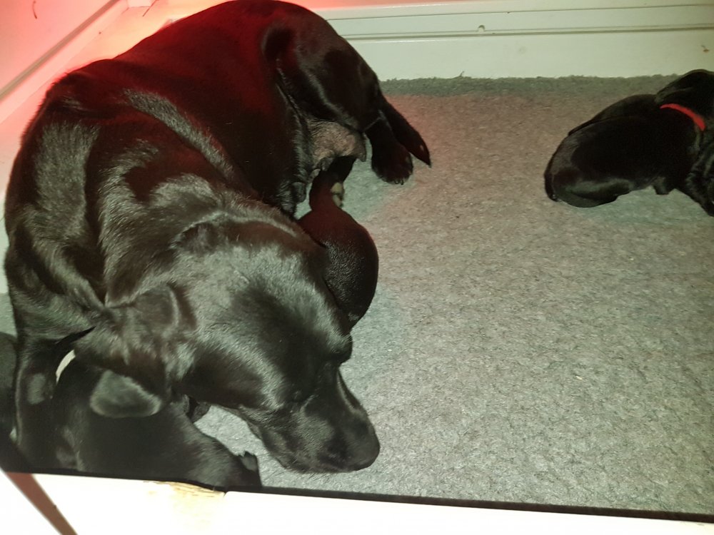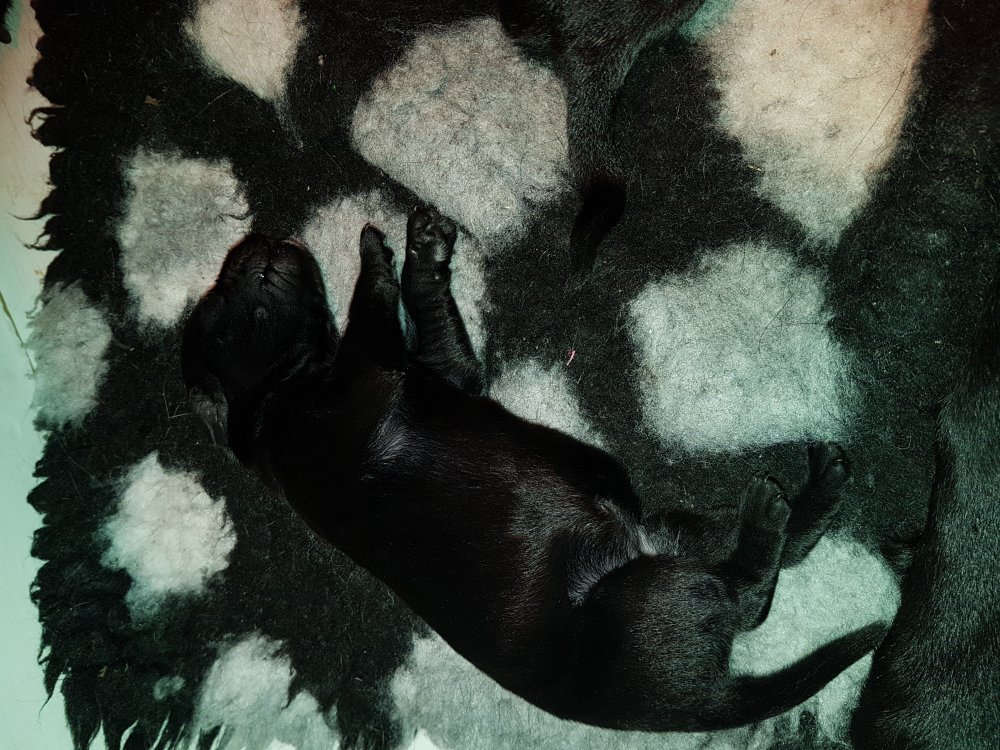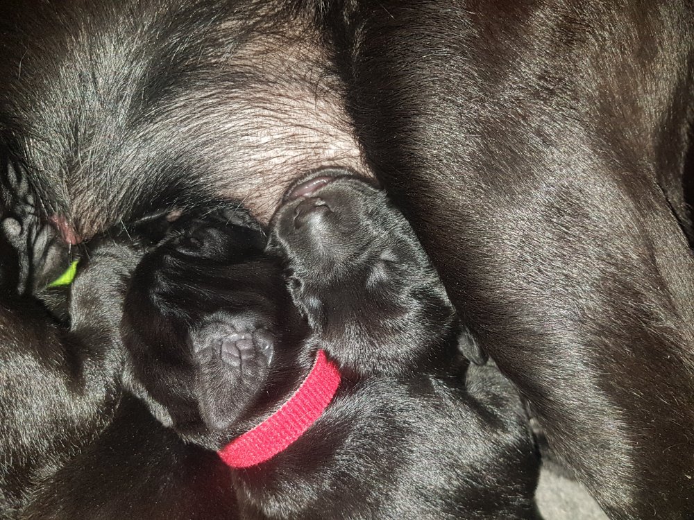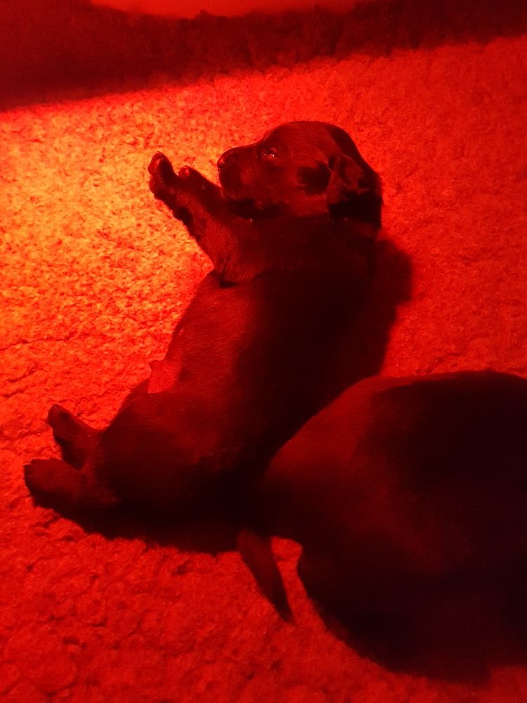 Her i torsdags kunne vi så småt begynde at se små sprækker ved øjnene på et par af hvalpene, så det bliver så spændende at se de små øjne når de kommer frem.
