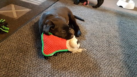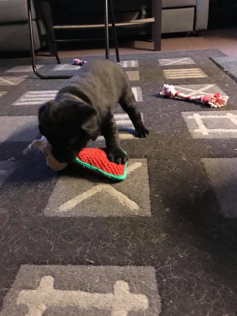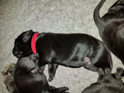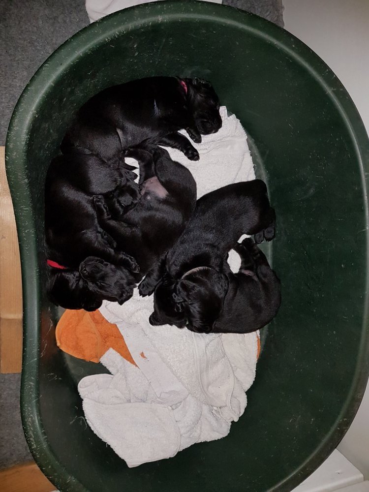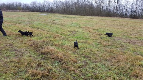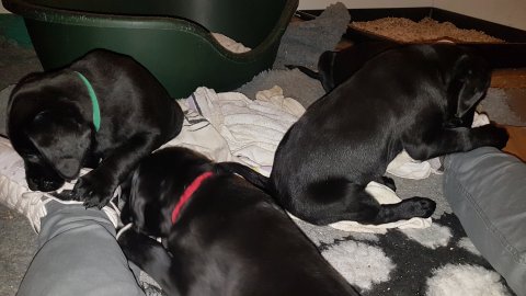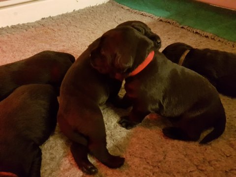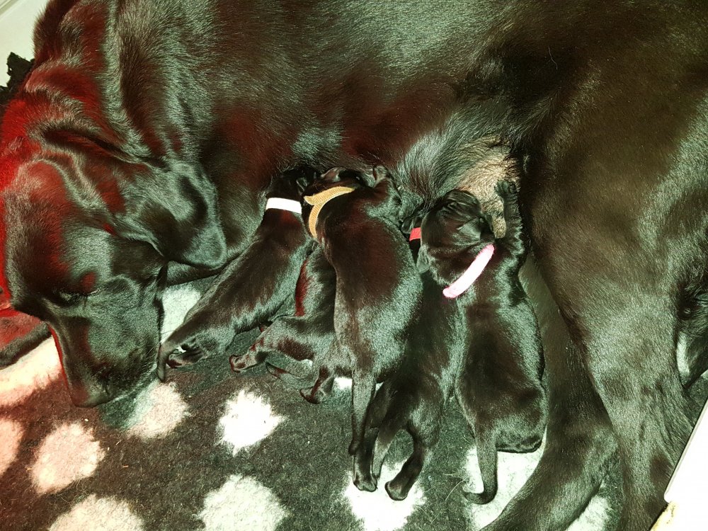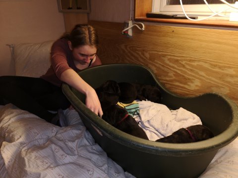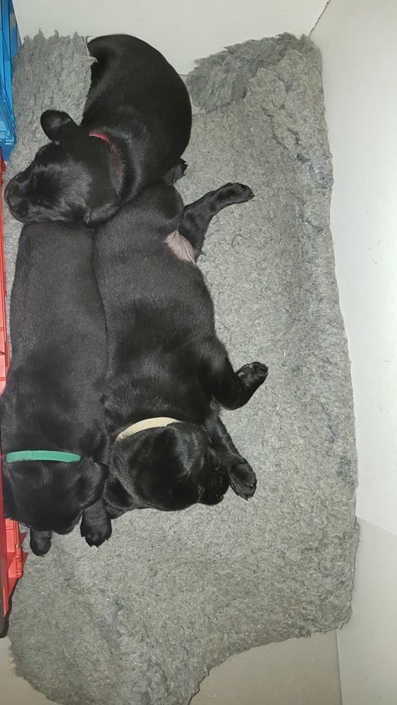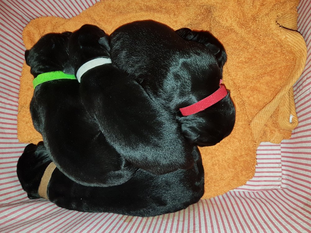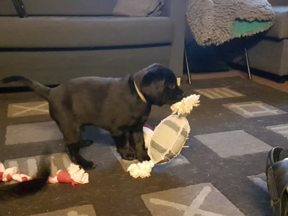 De er næsten altid klar når vi kommer ned ad trappen, især hvis de andre hunde kommer med ned, så står de strakts ved lågen. Malou elsker hendes små hvalpe men hun er også begyndt at opdrage på dem. Hvalpene har deres egne opdragelses metoder, der bliver kæmpe, leget og sovet. Det store hit lige nu et vandskålen, ofte er det vand ud over det hele. Hvalpene også begyndt at komme ud i "hvalpebørnehaven" og det er ikke altid de synes at de er færdig med at lege, når vi sætter dem i rummet igen.