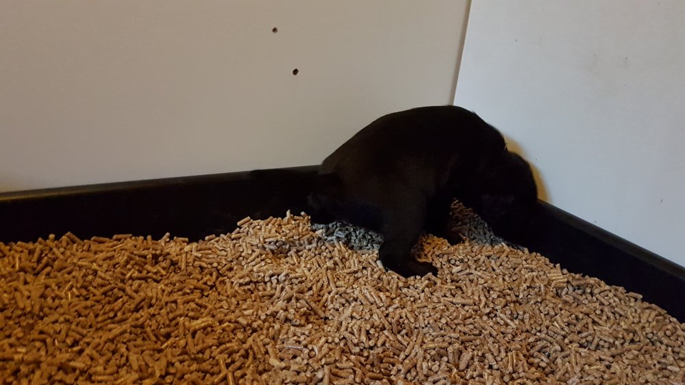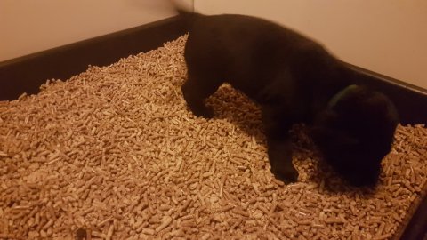 Hvalpkassen er kommet ud og "hunde toilette" er kommet ind.