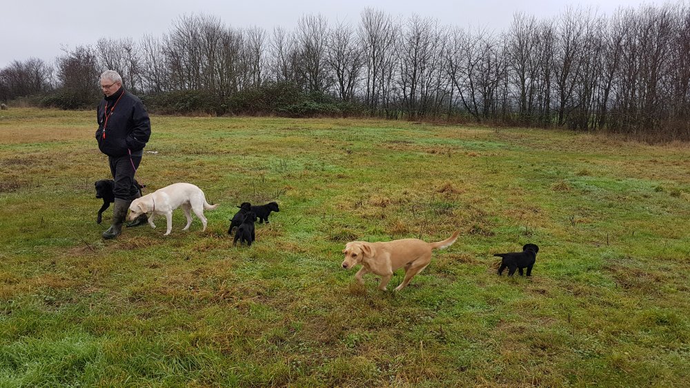 Hvalpene har været ud i den "store verden" og blevet luftet, sammen med resten af flokken her i huset, der var gang i de små ben når de skulle følge med flokken