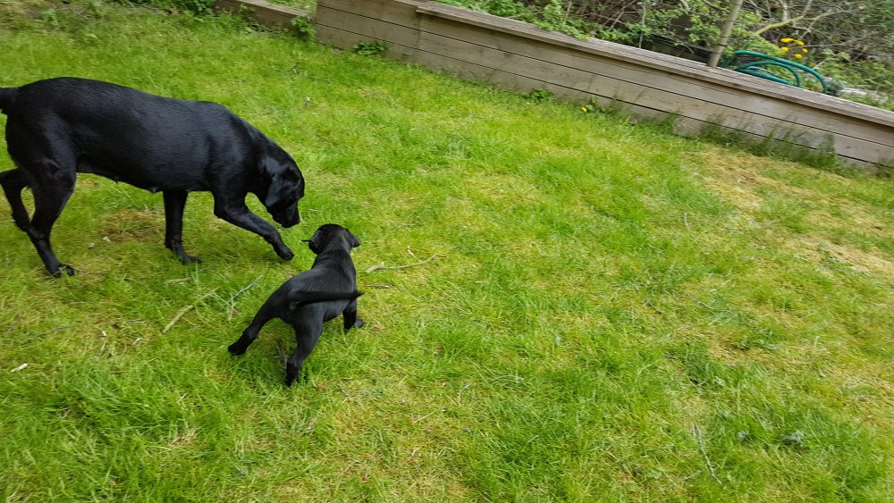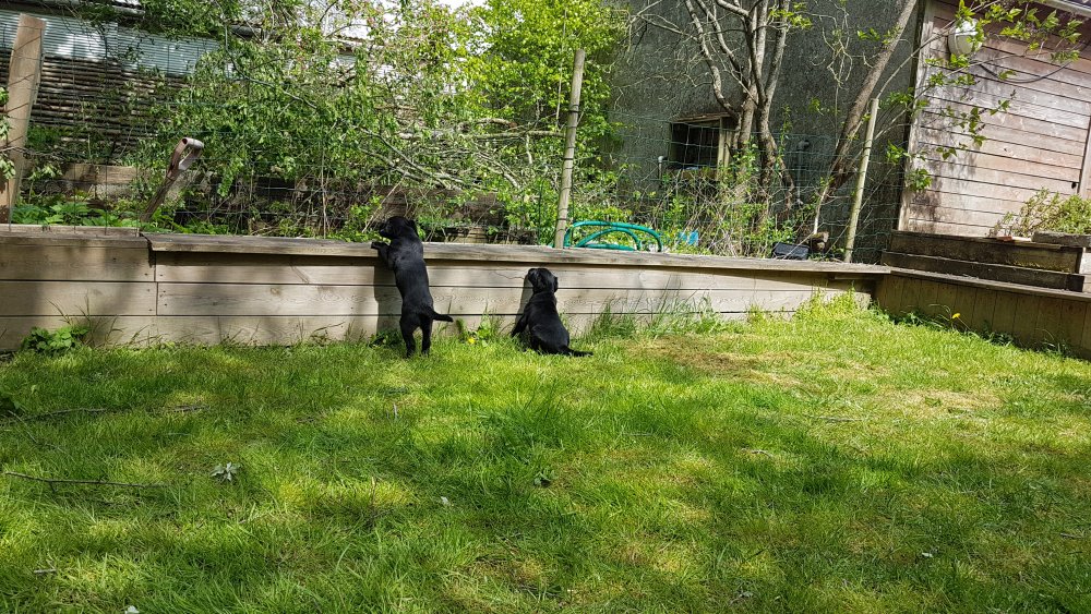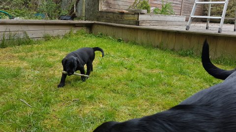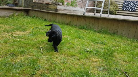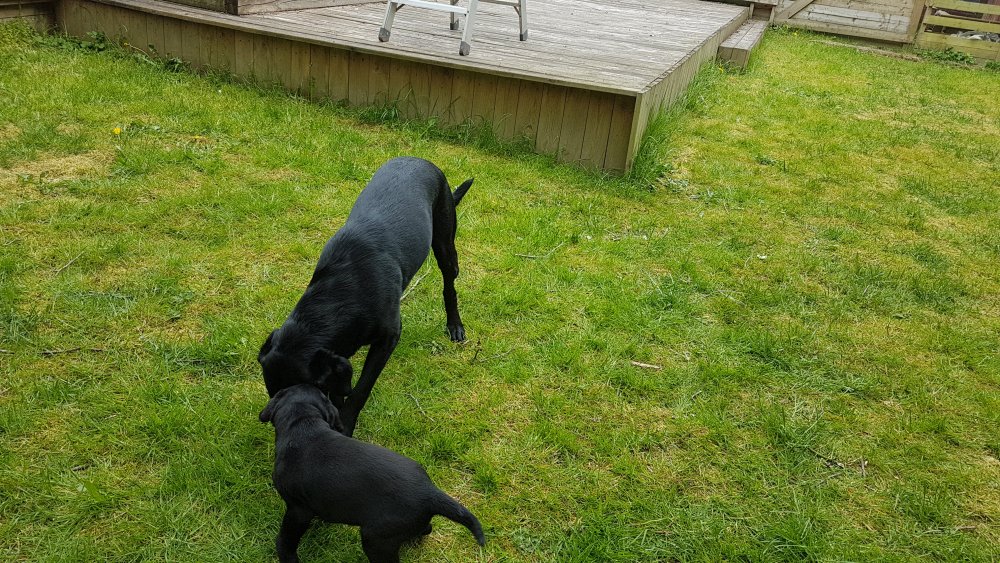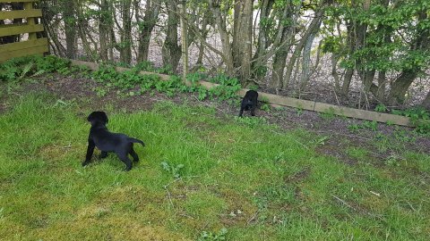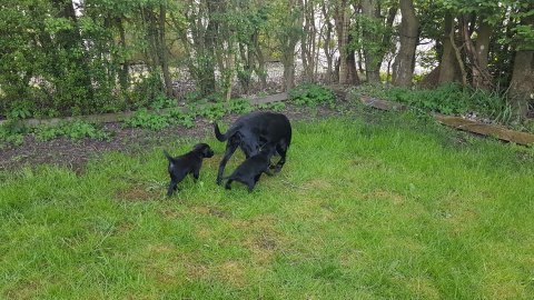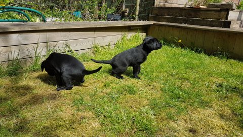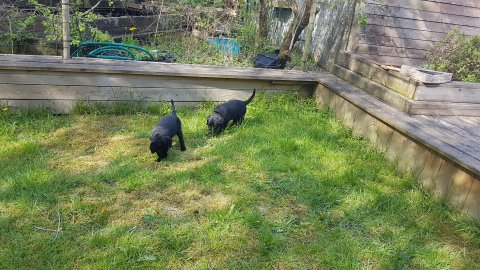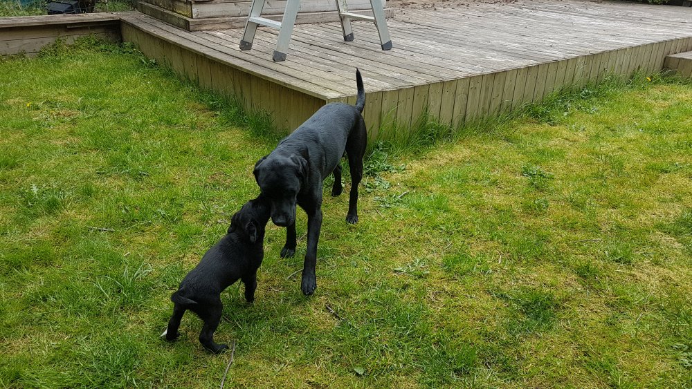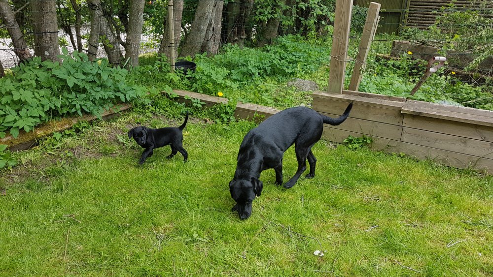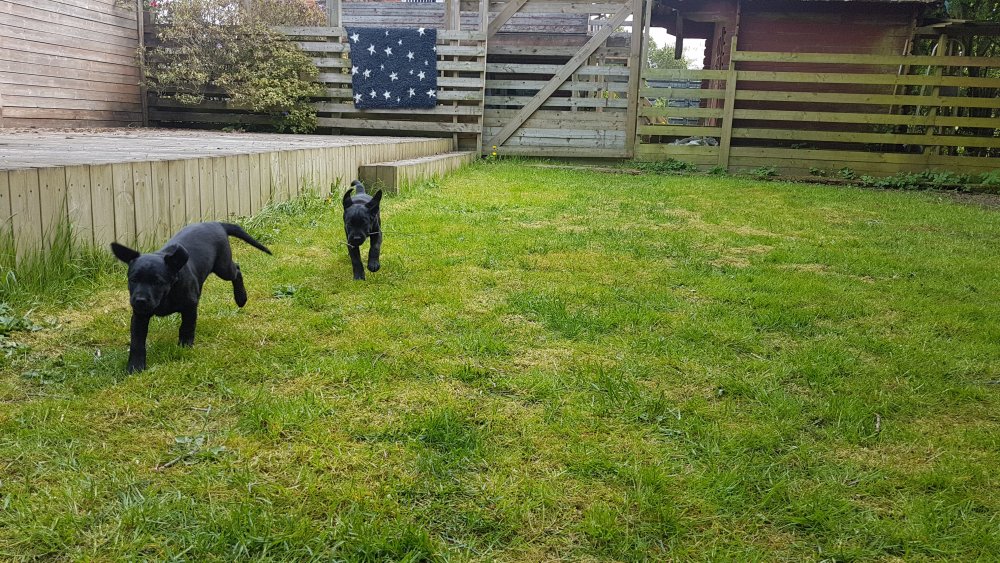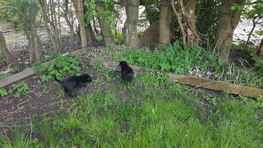 Hvalpene har også været lidt ude i haven også har de været i "hvalpebørnehaven",