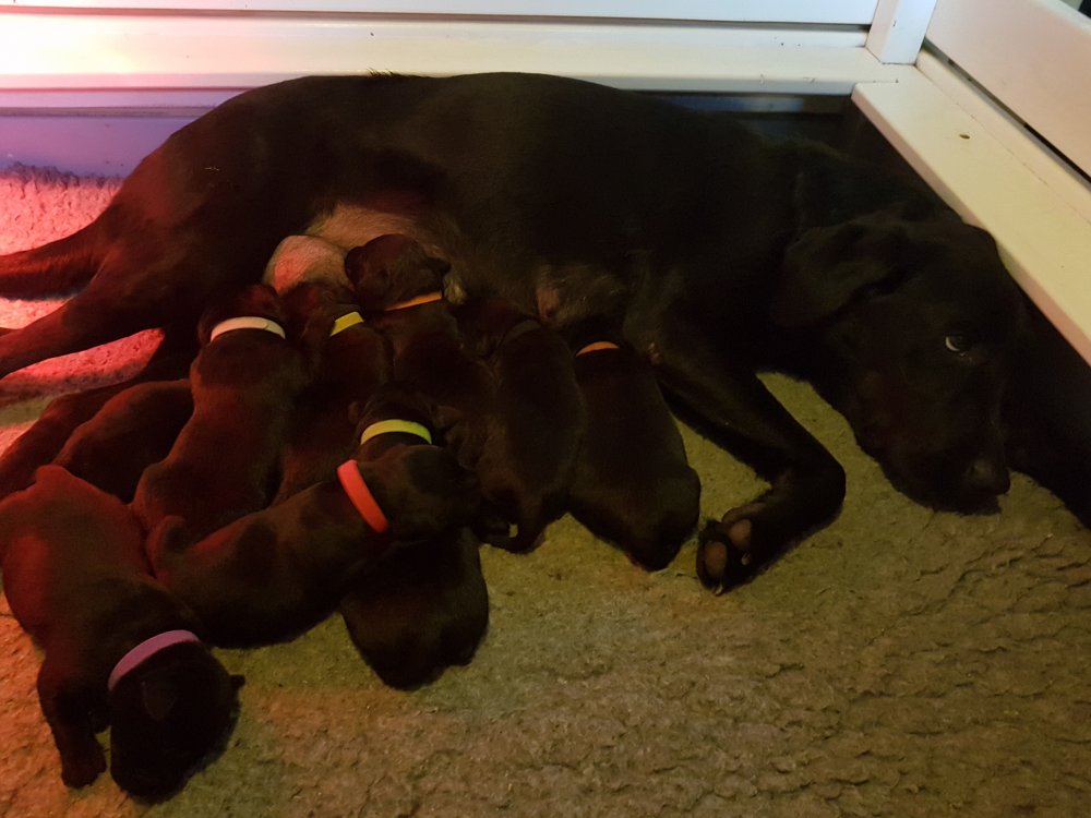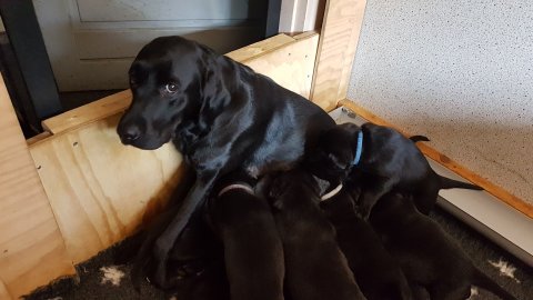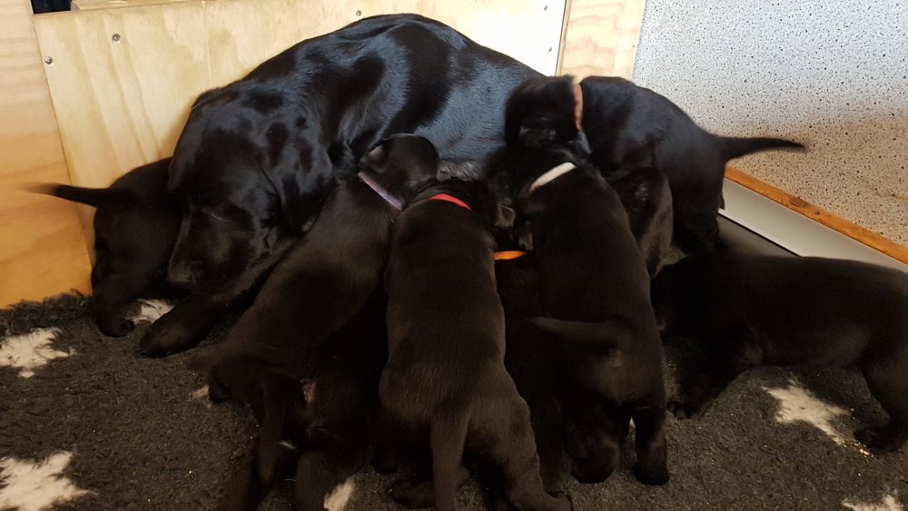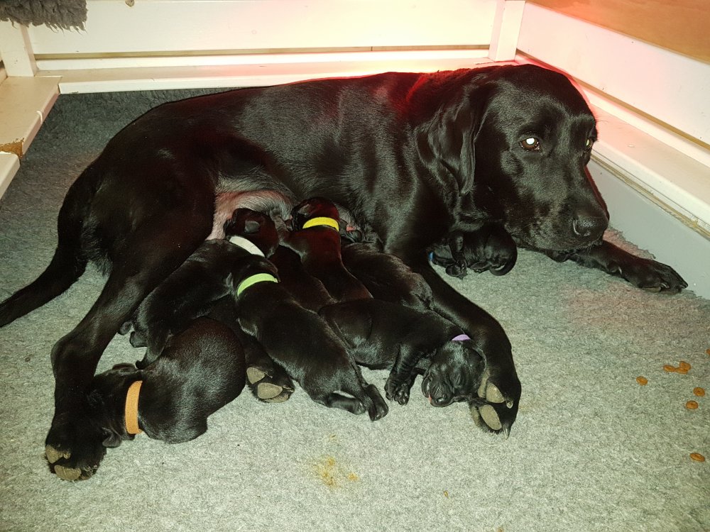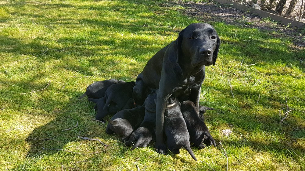 Nata med sine 9 små hvalpe.