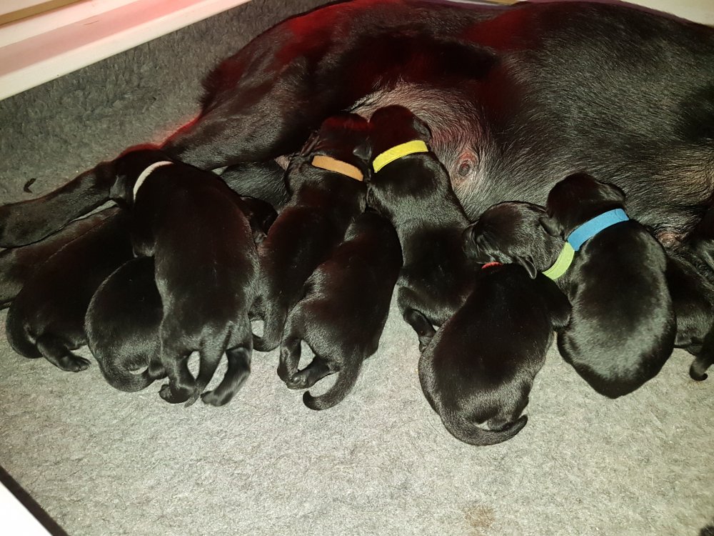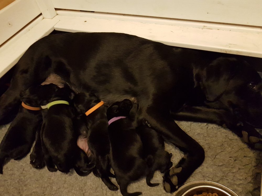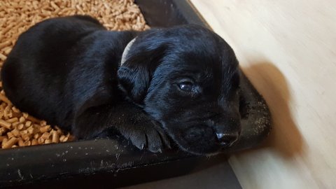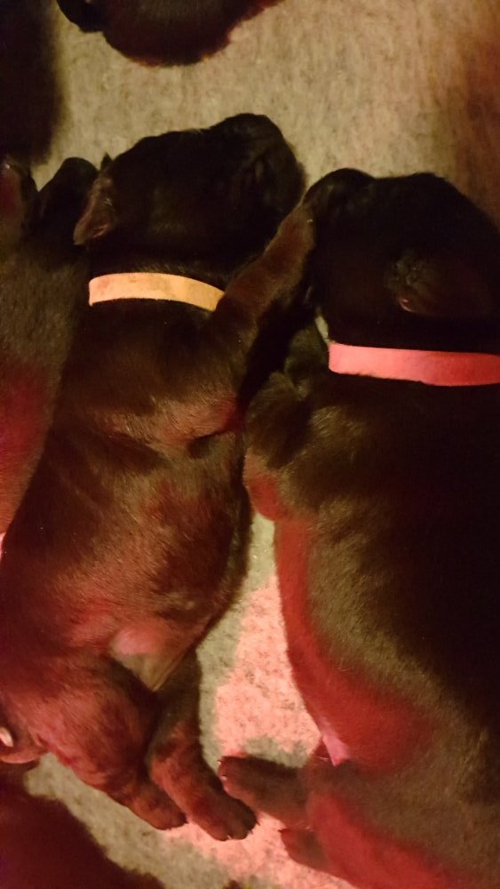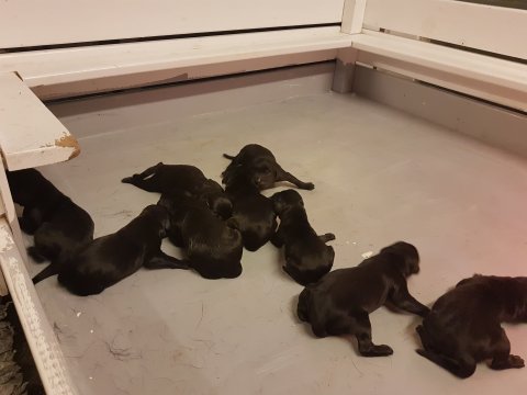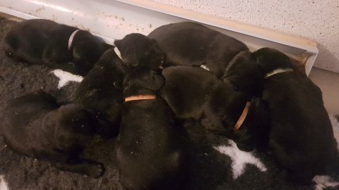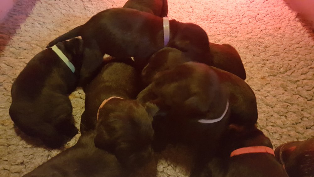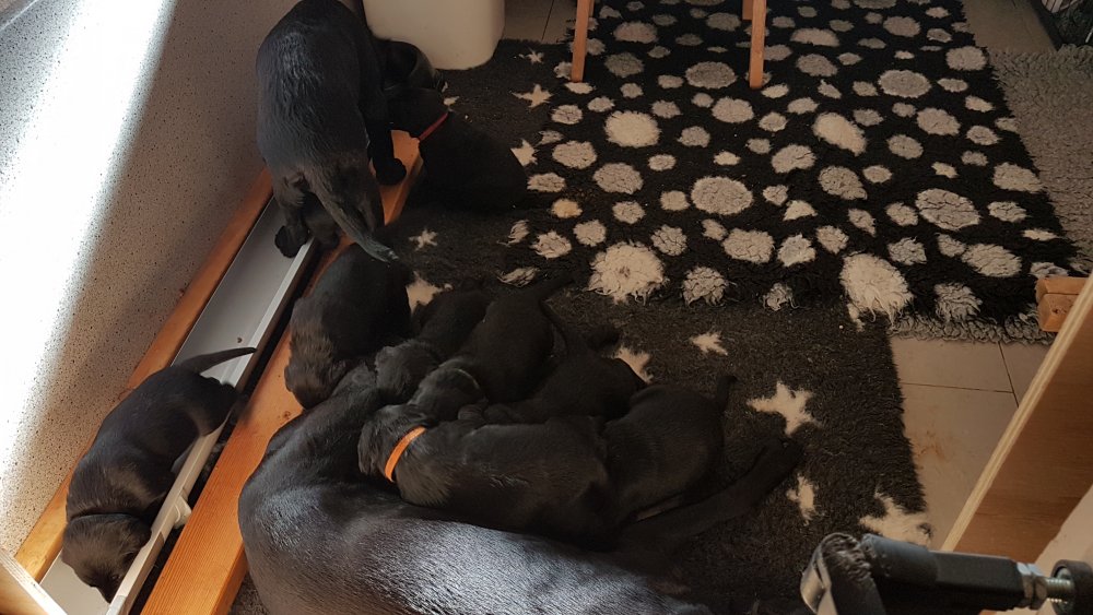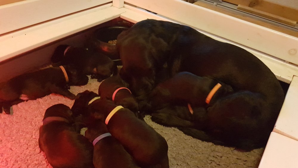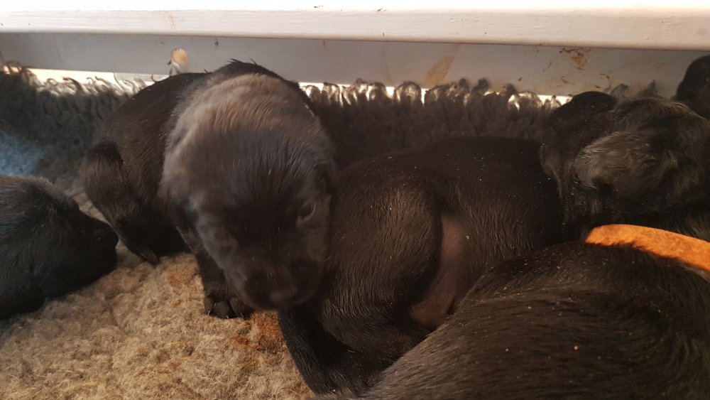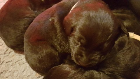 Vi er begyndt at kunne ane de små sprækker ved øjnene på hvalpende, se det bliver så spændende at se når de små øjne kommer frem.