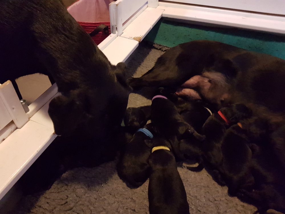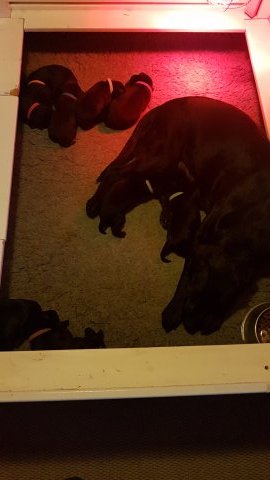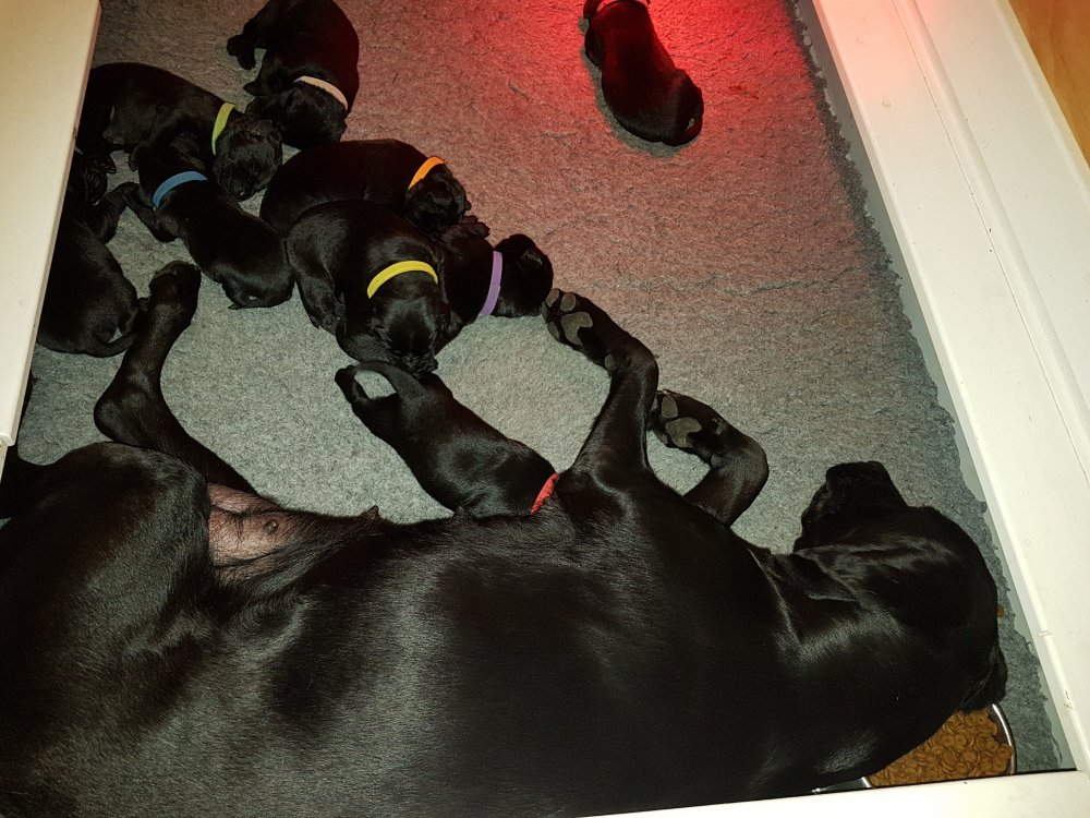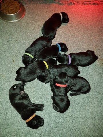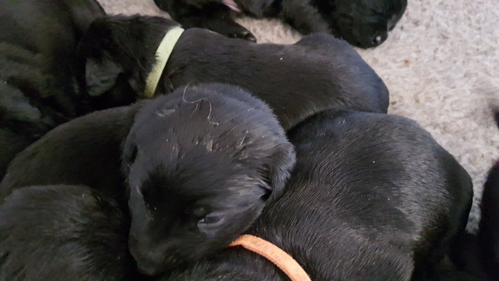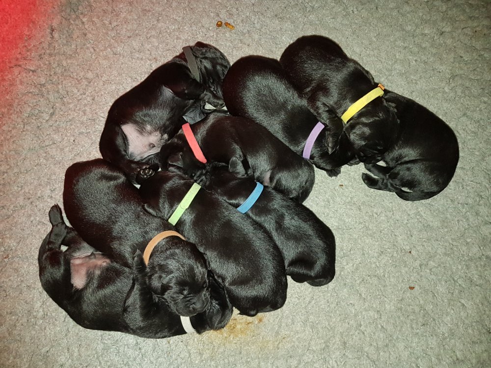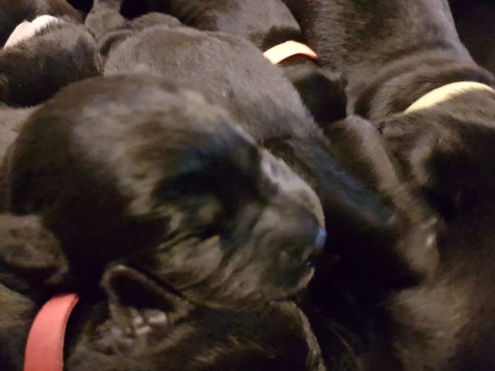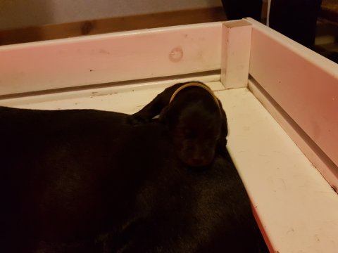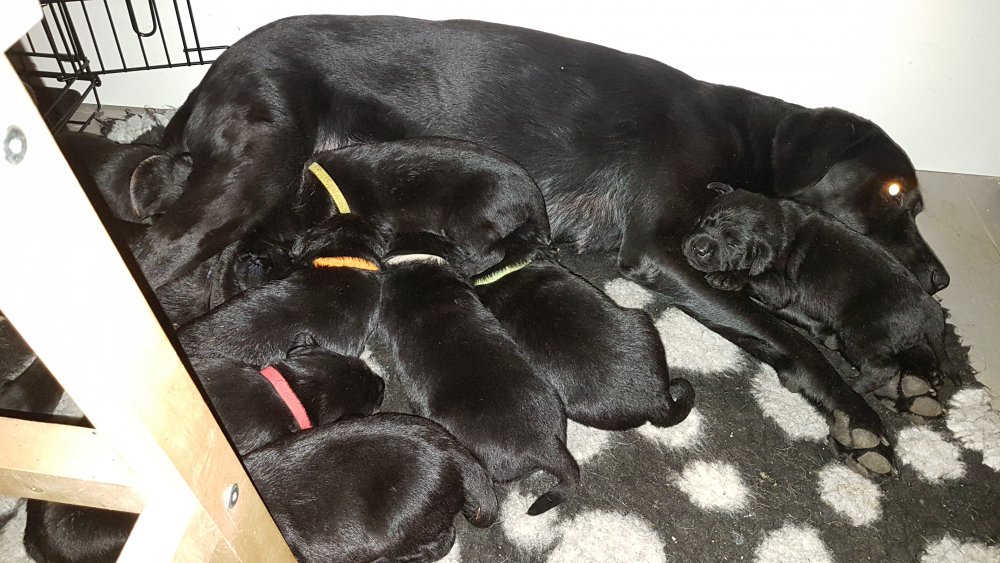 Vi er begyndt at kunne ane de små sprækker ved øjnene på hvalpende, se det bliver så spændende at se når de små øjne kommer frem.