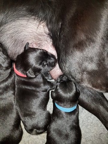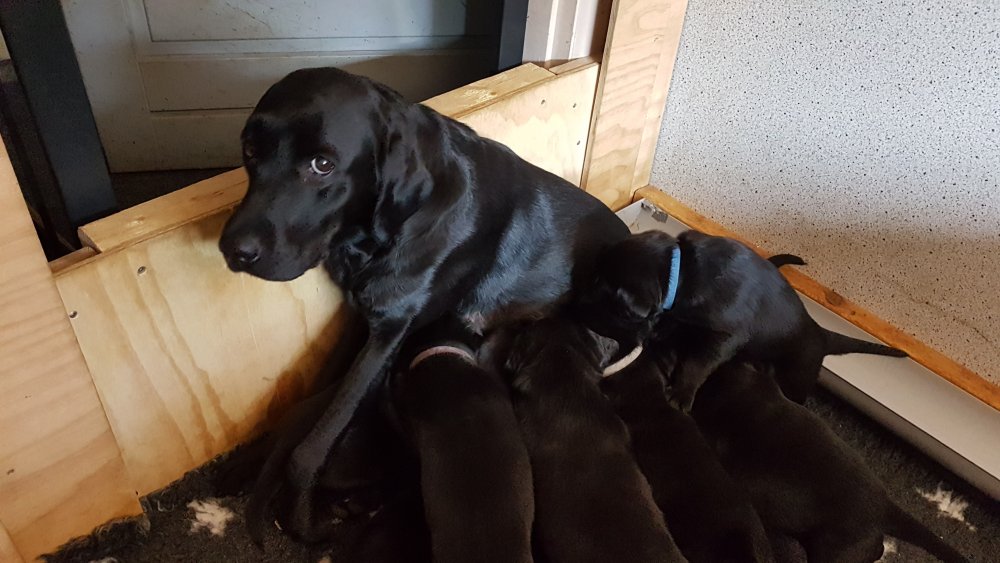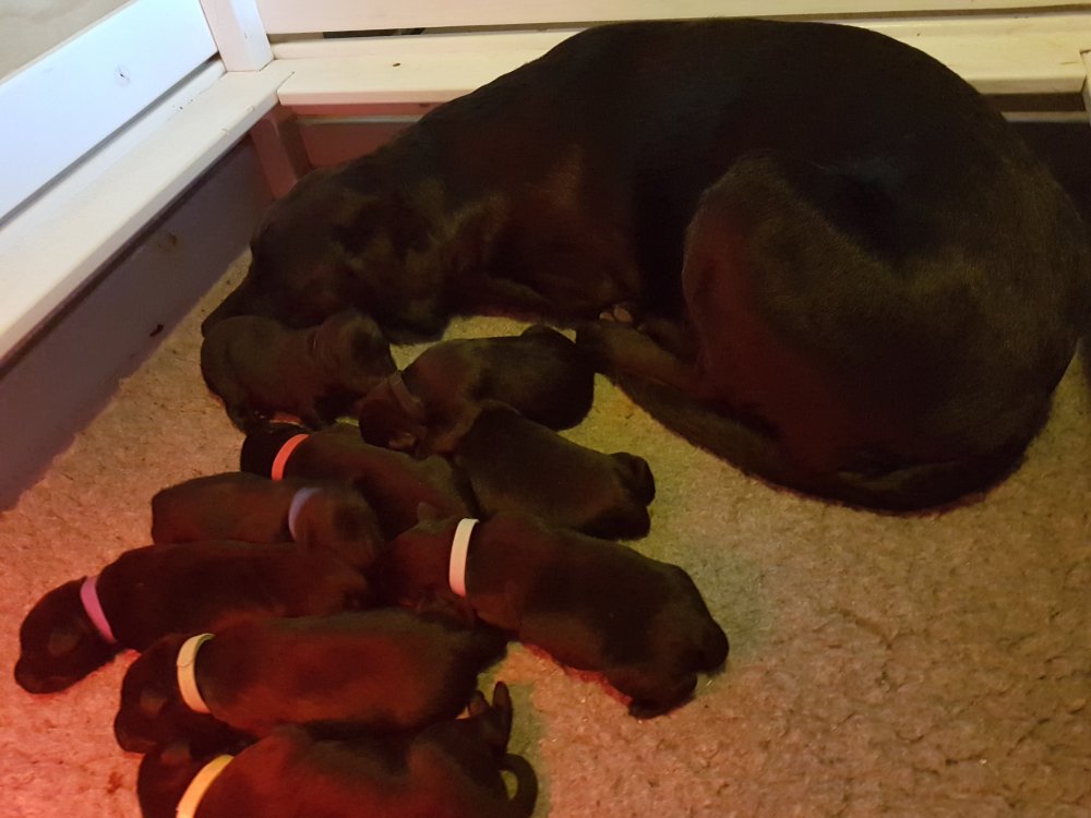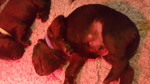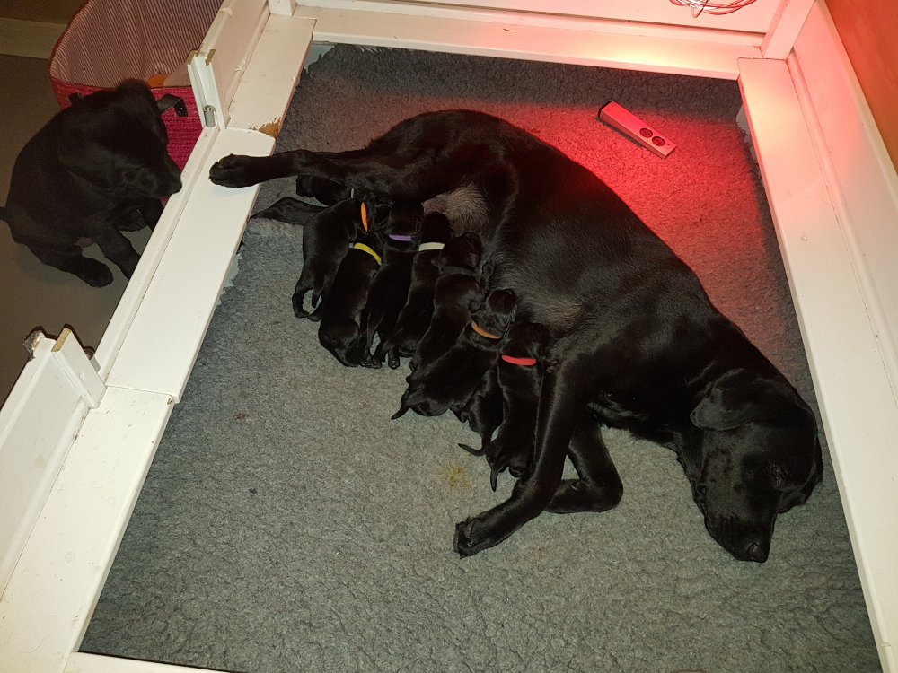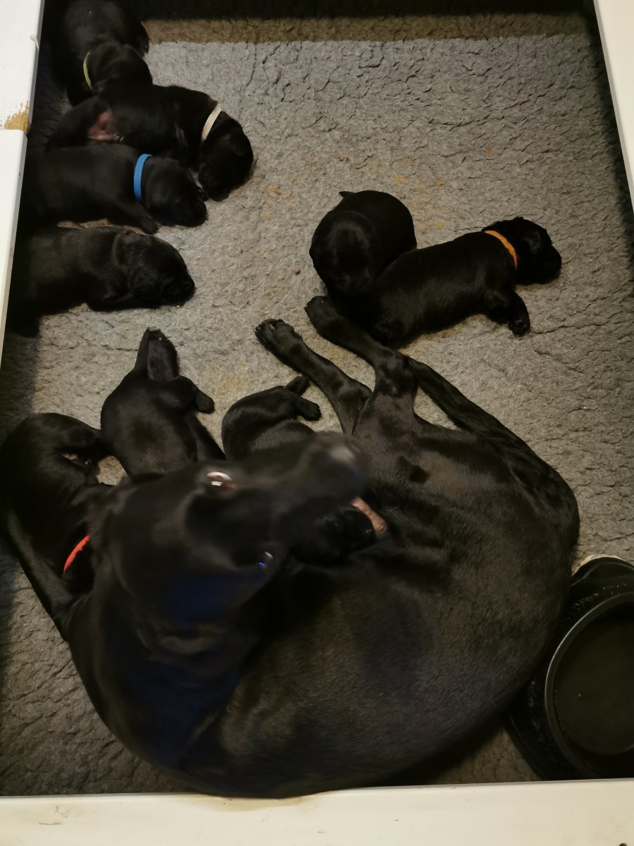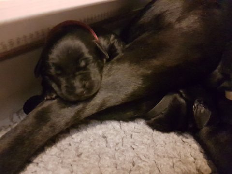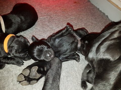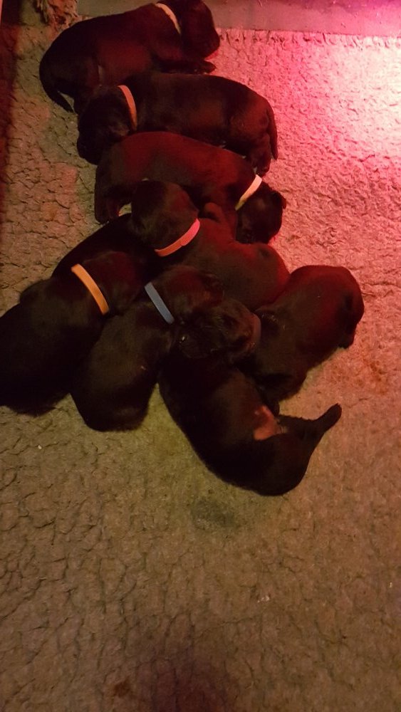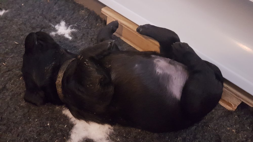 Vi er begyndt at kunne ane de små sprækker ved øjnene på hvalpende, se det bliver så spændende at se når de små øjne kommer frem.
