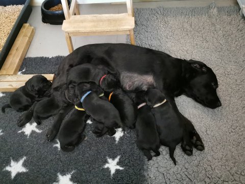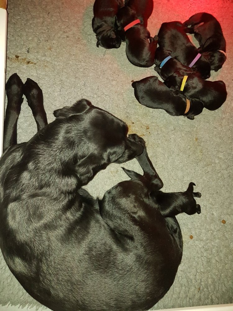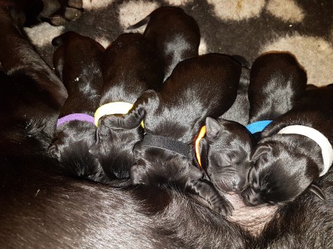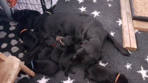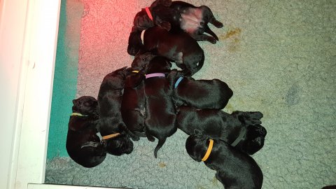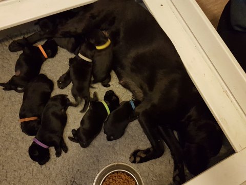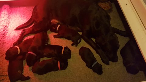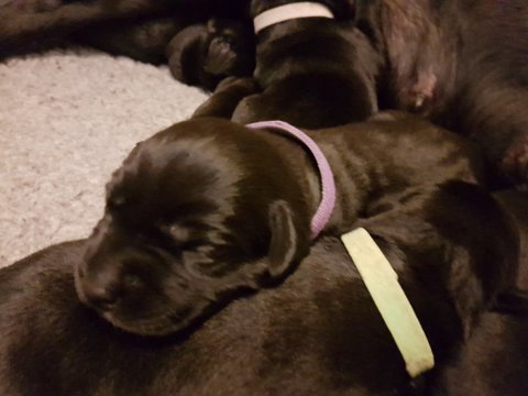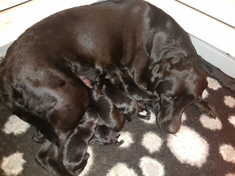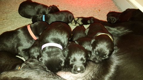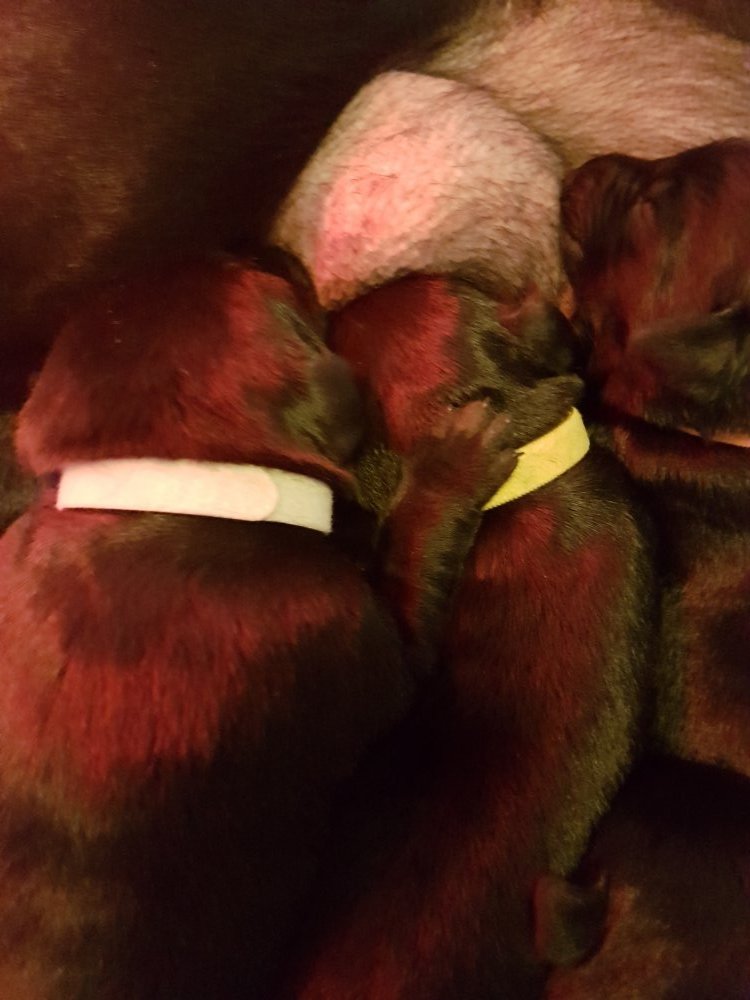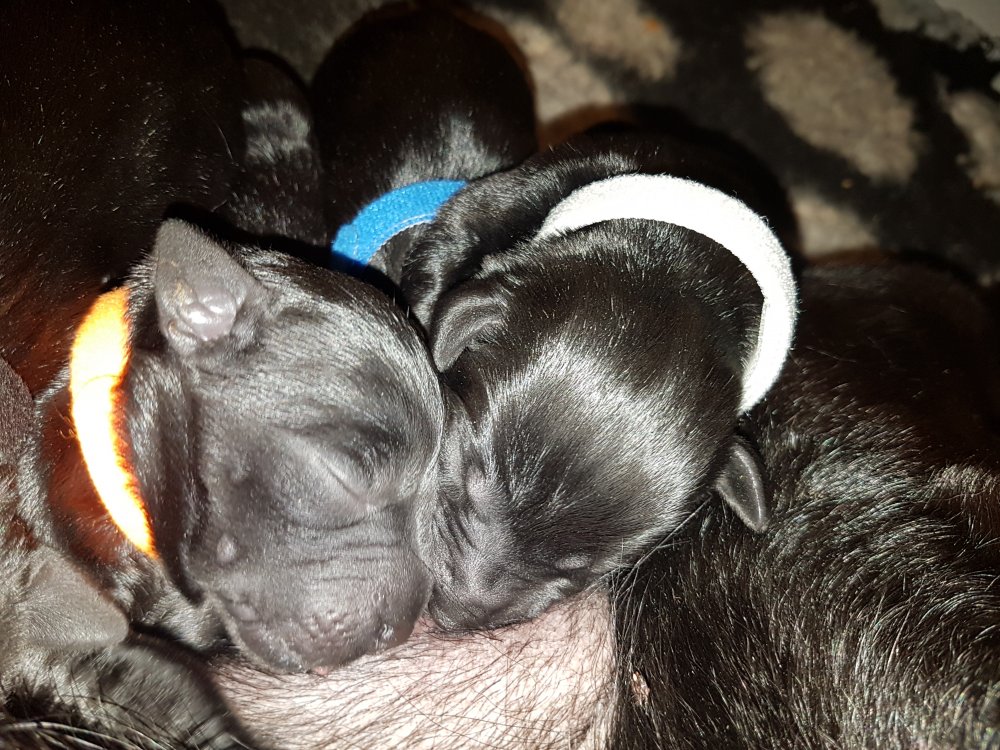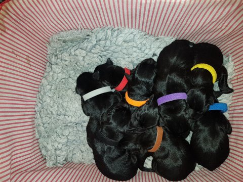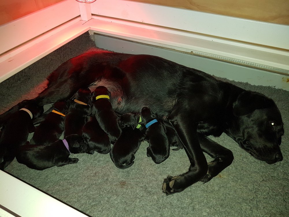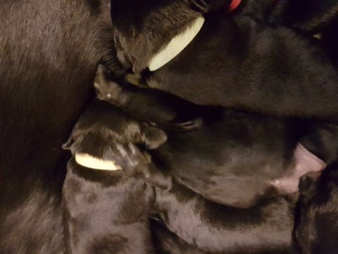 Vi er begyndt at kunne ane de små sprækker ved øjnene på hvalpende, se det bliver så spændende at se når de små øjne kommer frem.