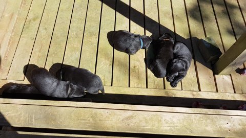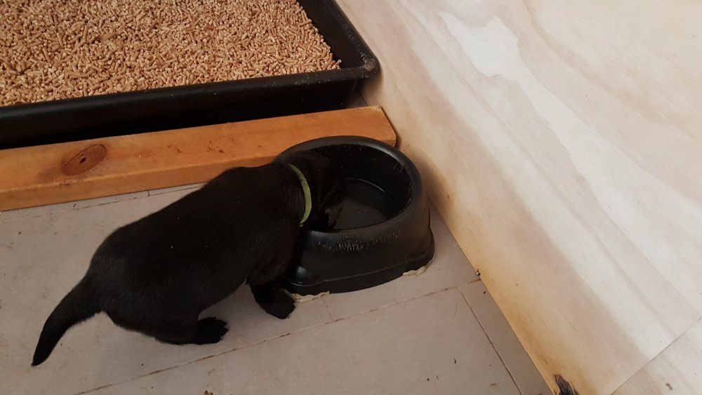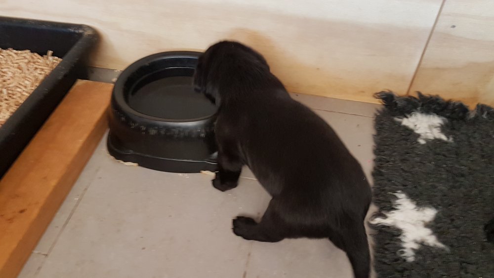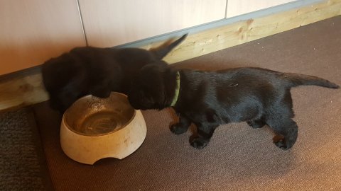 De er også klar over hvornår de skal have hundemad og så sidder de klar ved mad truget. De drikker vand og så er de stadig glad for Nata´s mælkebar.