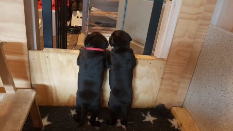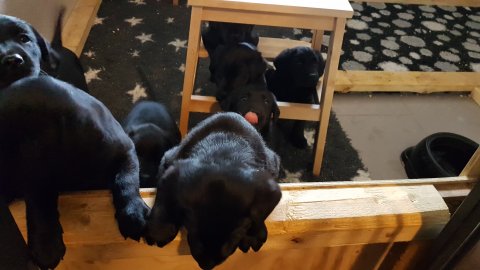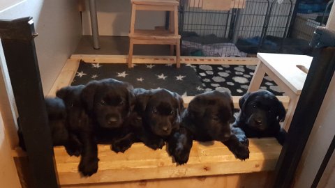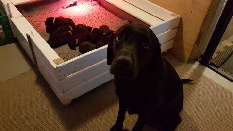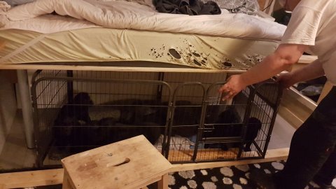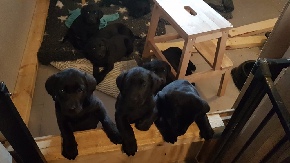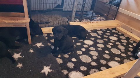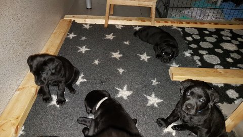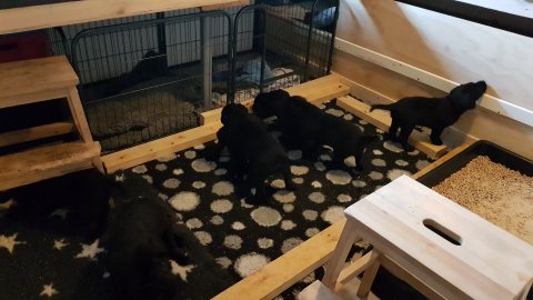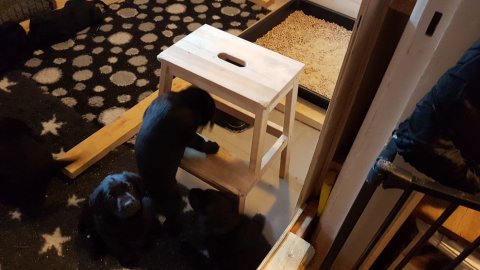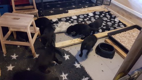 Hvalpene er flyttet ud af hvalpekassen.
