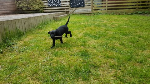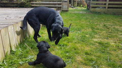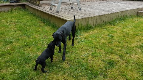 Nata er begyndt være lidt mere sammen med resten af familien hvilket hun nyder, men hun vil også rigtig gerne være sammen med hendes hvalpe.